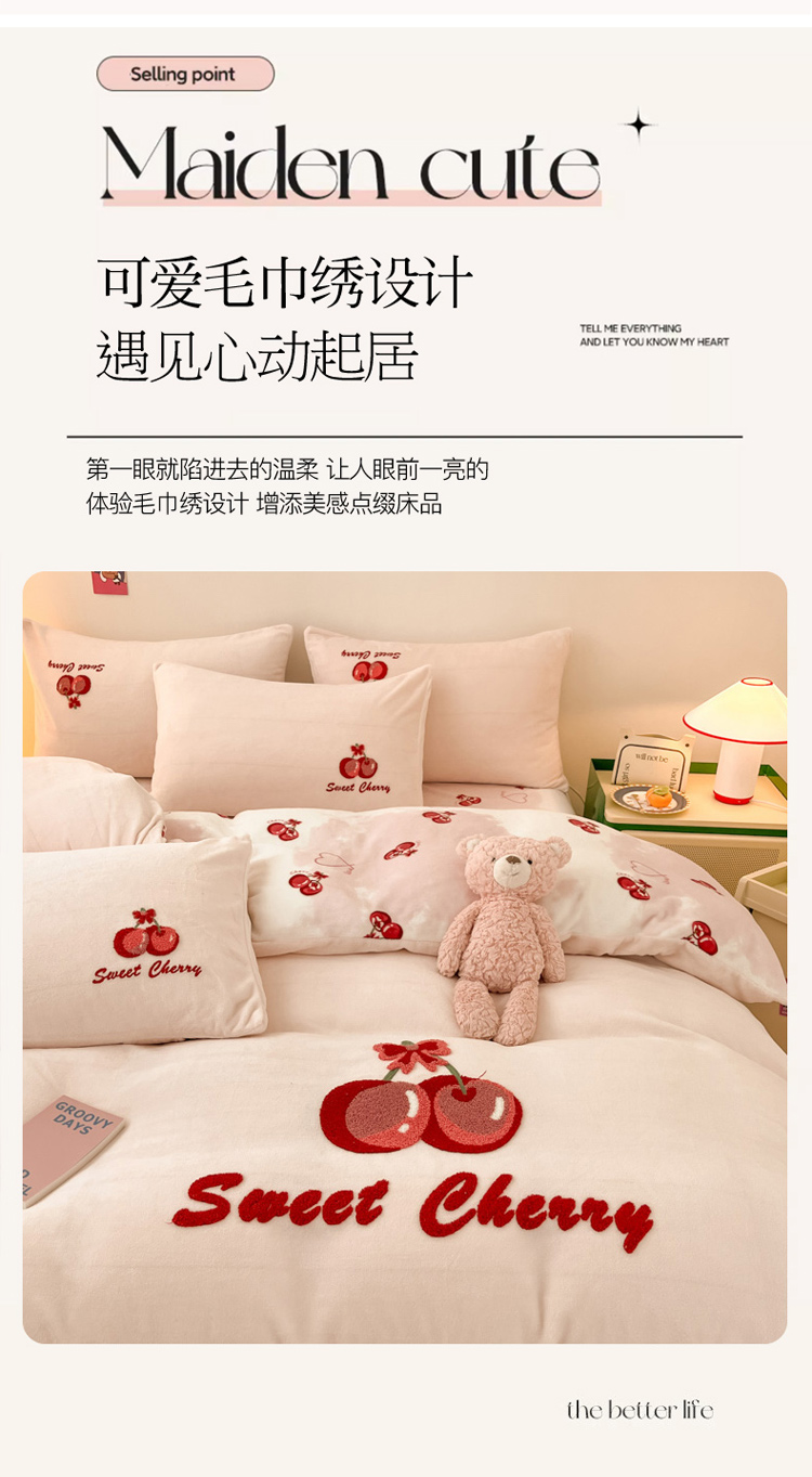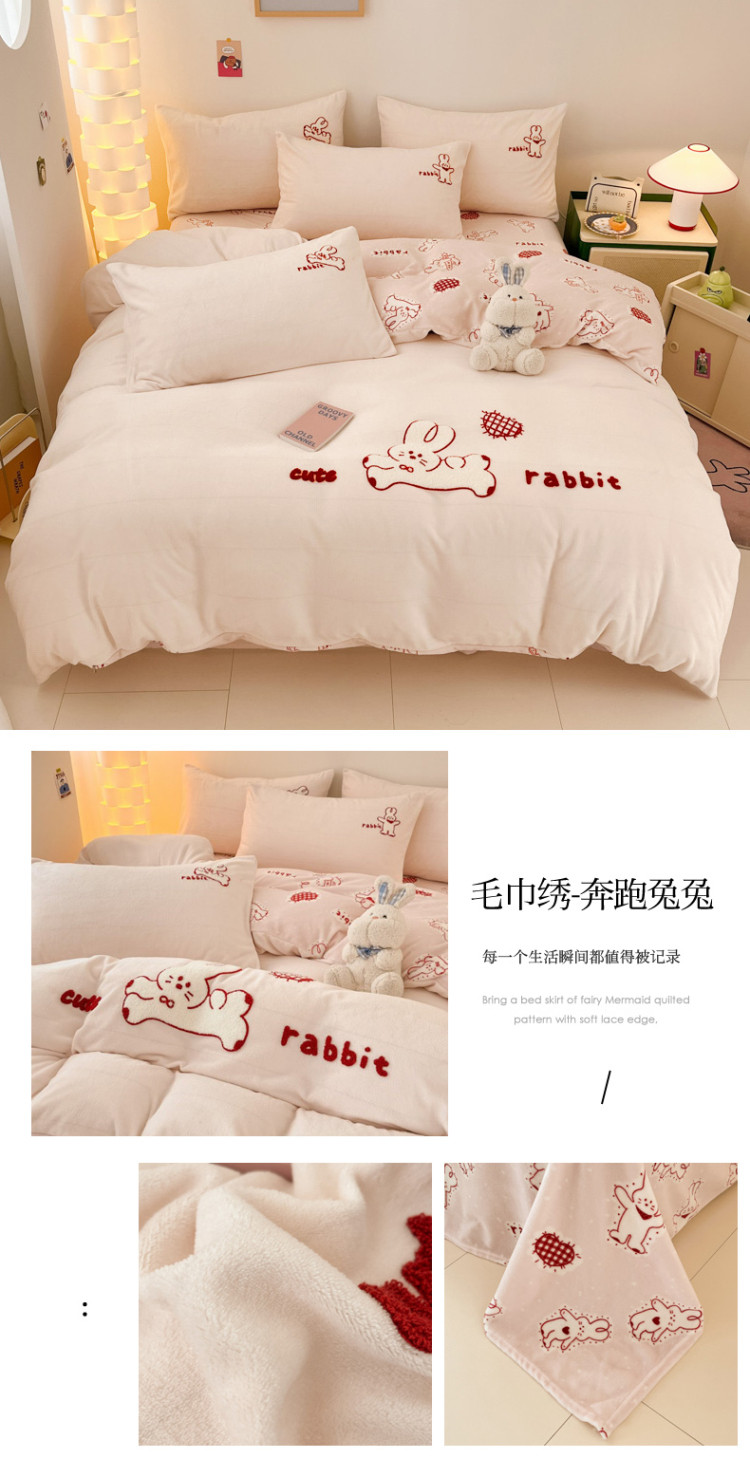 (总)寐居家纺 2025新款A类牛奶绒毛巾绣床盖,组合,格纹萌犬,红果果,萌兔有约,年年有鱼,甜心小骑,星伴小象
