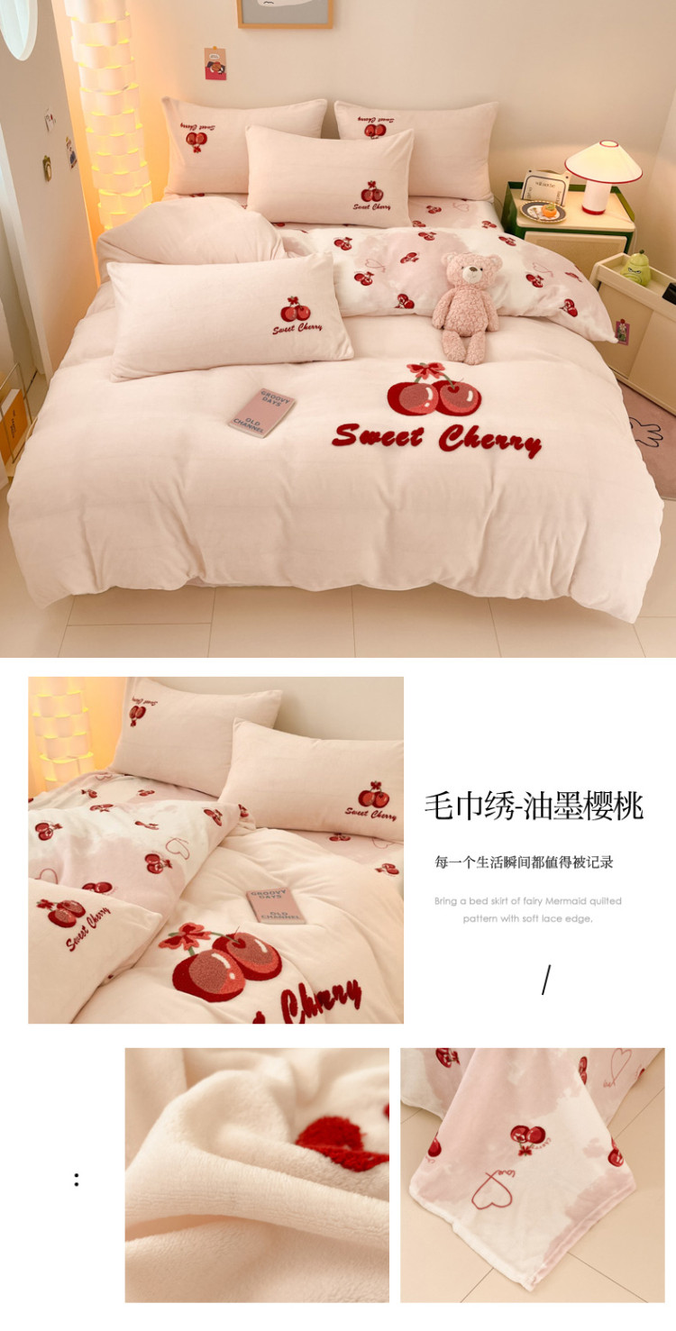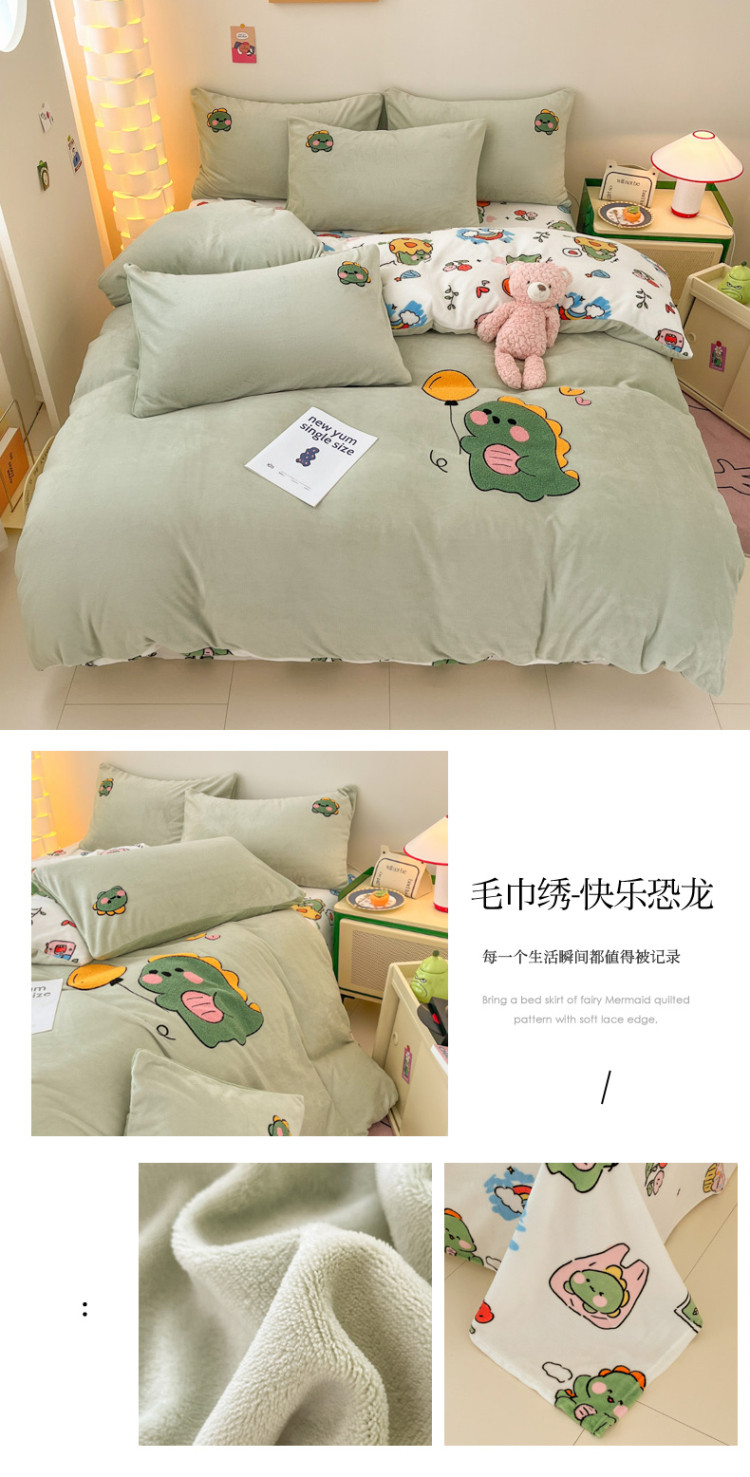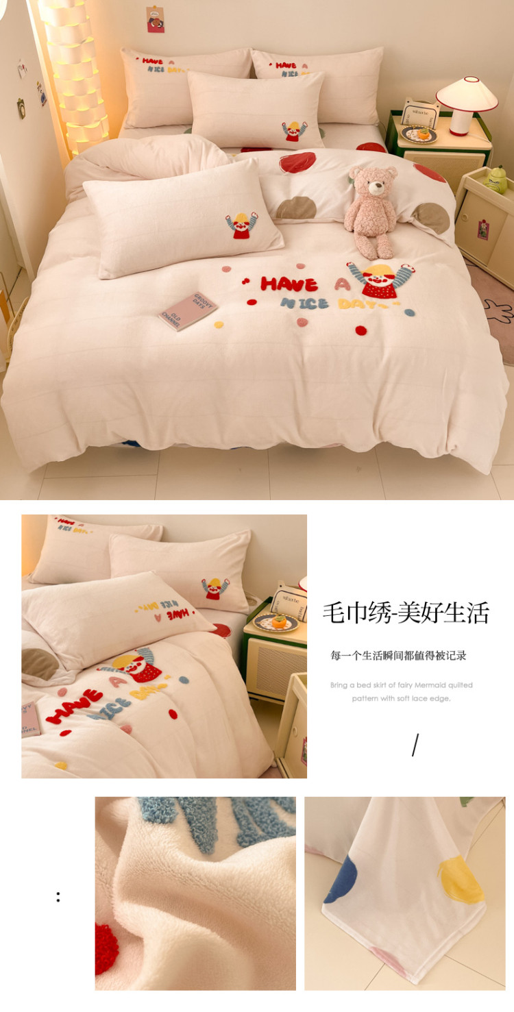 (总)寐居 2023新款印花毛巾绣牛奶绒四件套