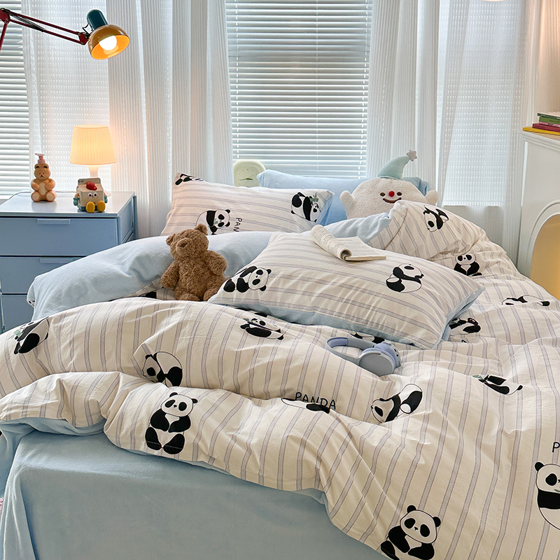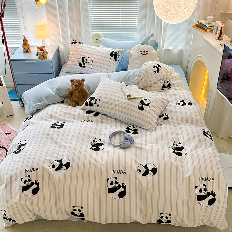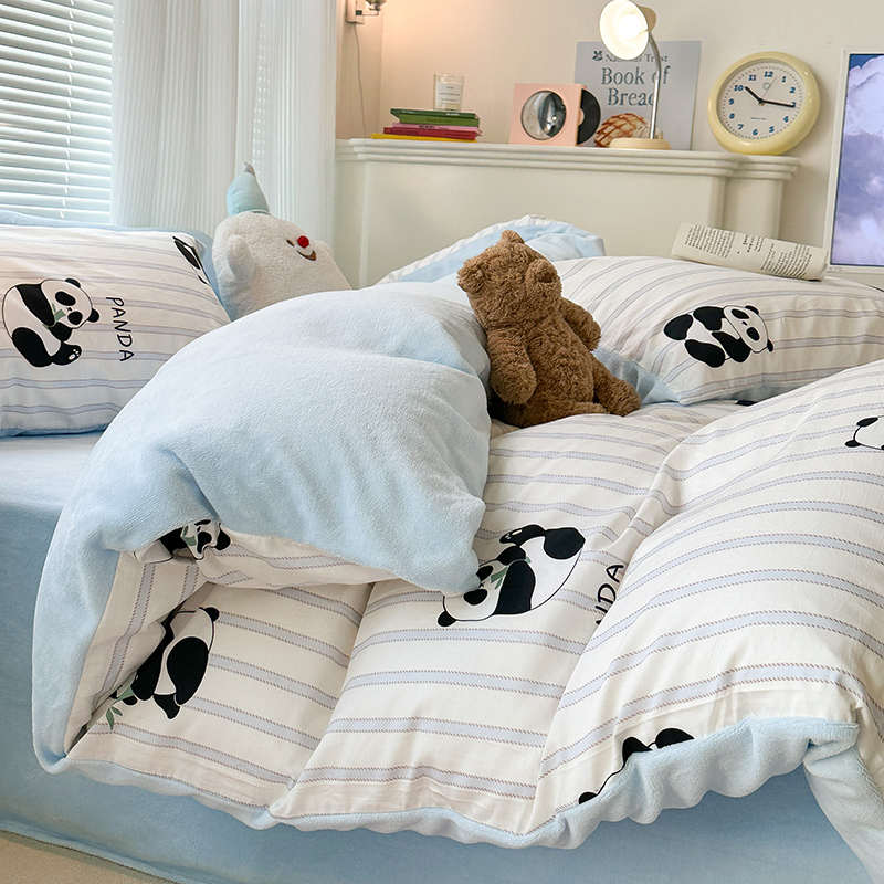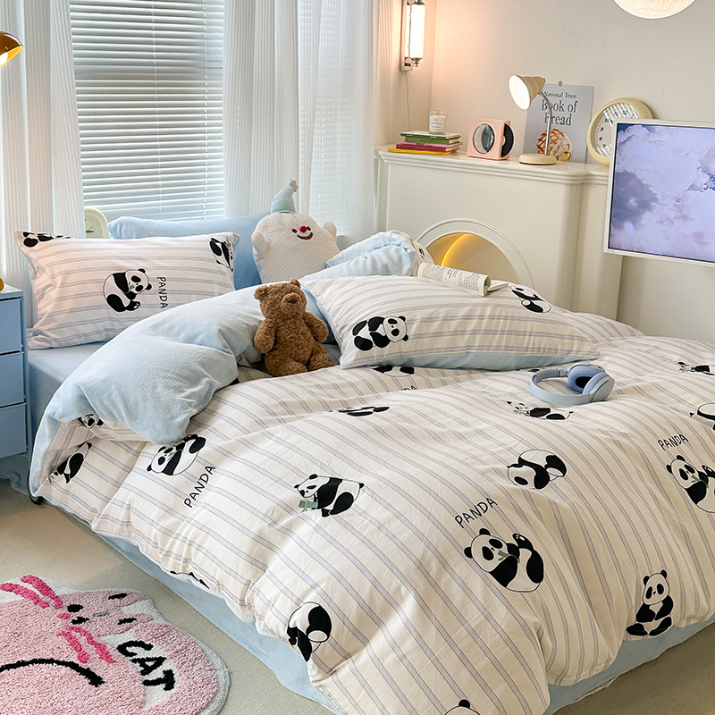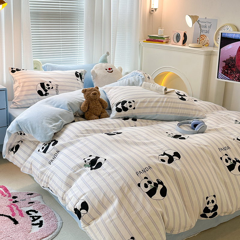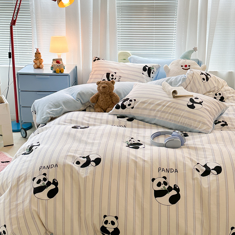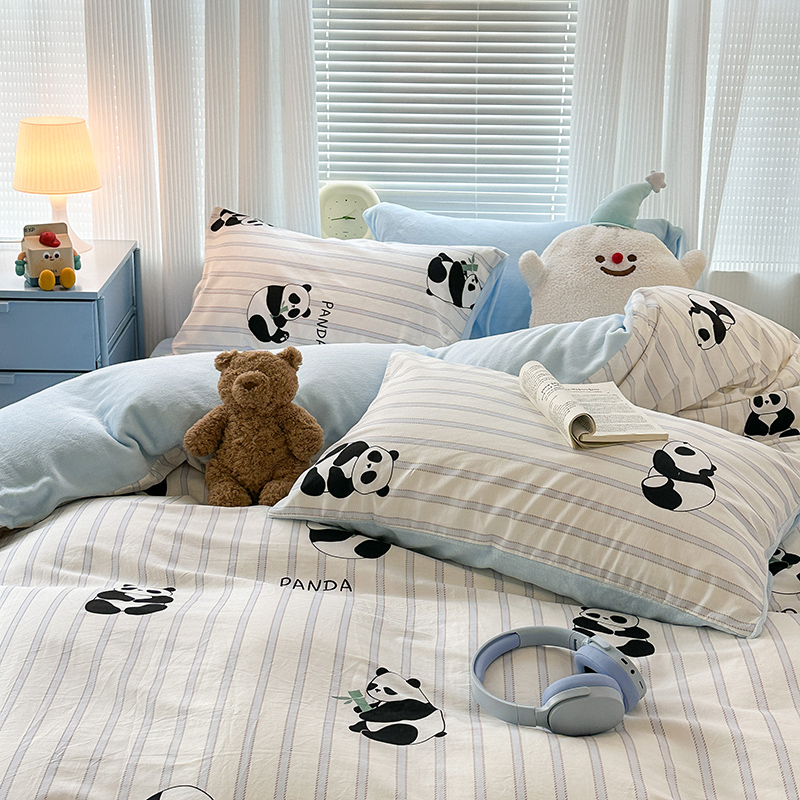 昔可家纺 2023新款y2k卡通印花系列棉加绒四件套 呆萌熊猫