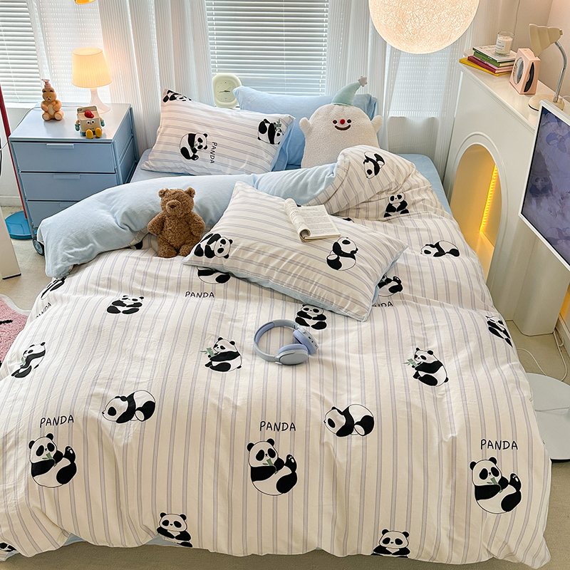 商品名称:昔可家纺 2023新款y2k卡通印花系列棉加绒四件套 呆萌熊猫