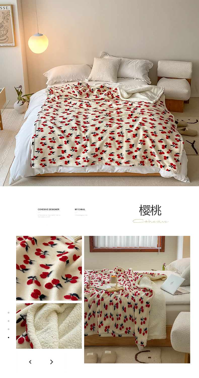 萝莉家纺 2023新款韩国订货热销款羊毛绒毯 樱桃