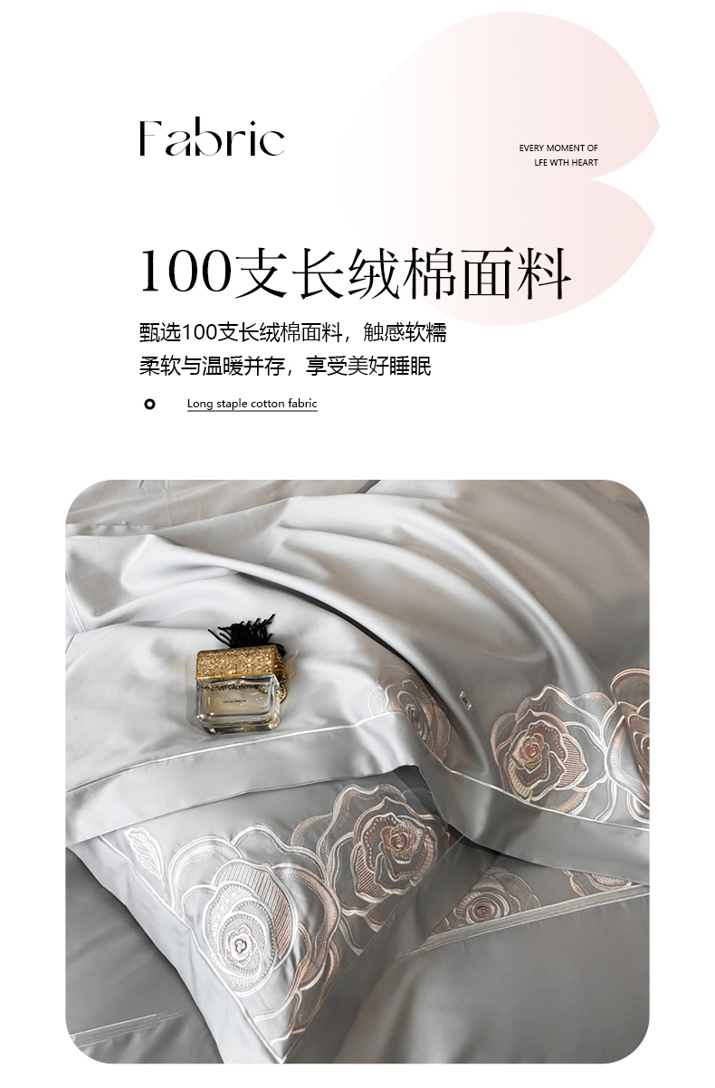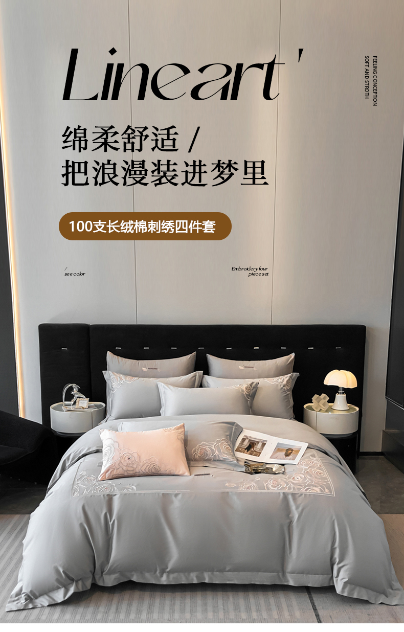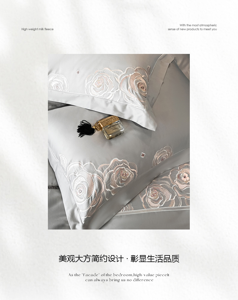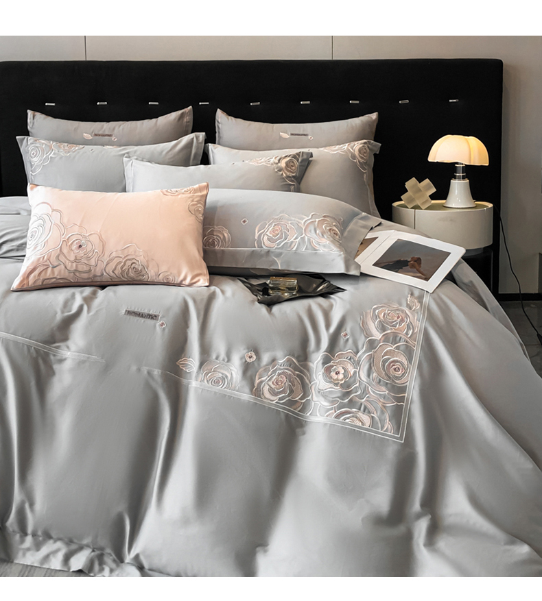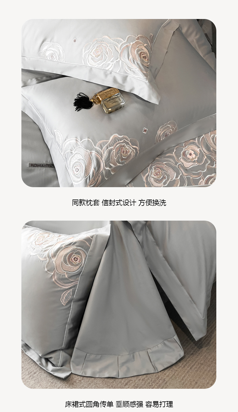 商品名称:魅都 100s长绒棉简约轻奢刺绣四件套 婉玉-高级灰