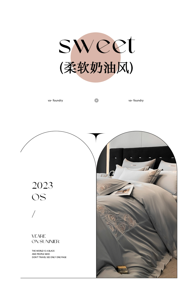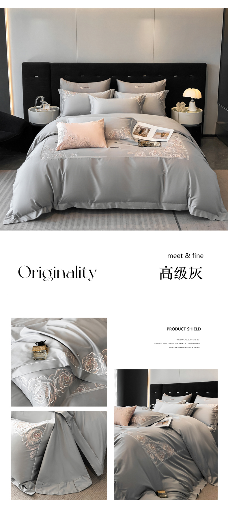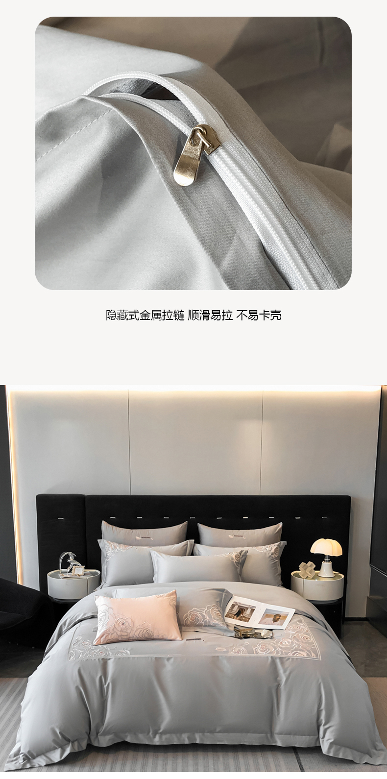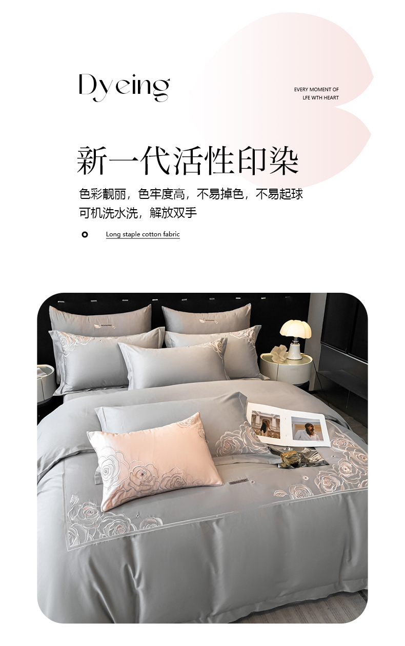 商品名称:魅都 100s长绒棉简约轻奢刺绣四件套 婉玉-高级灰