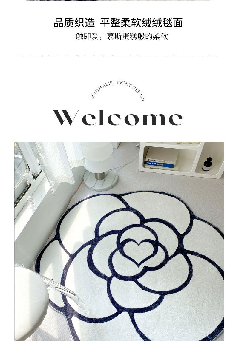 商品名称:爵仕家纺 2023新款仿羊绒山茶花地毯地垫 山茶花爱心