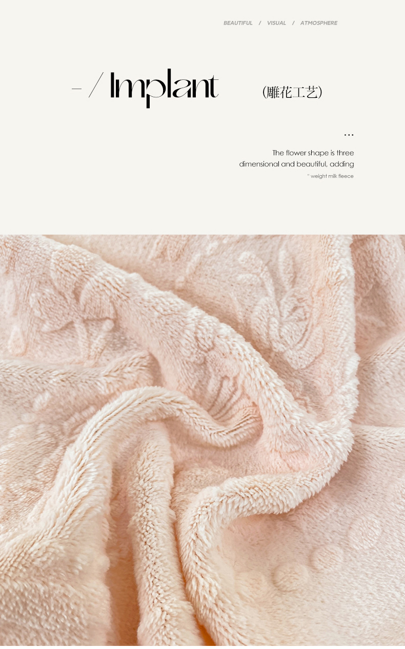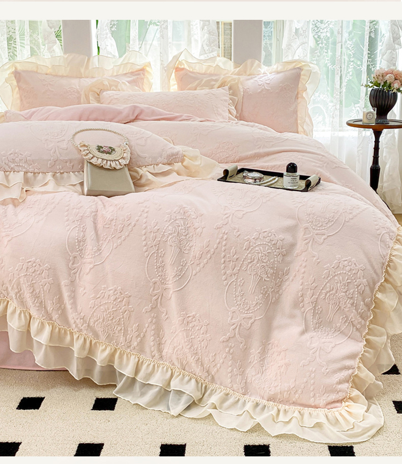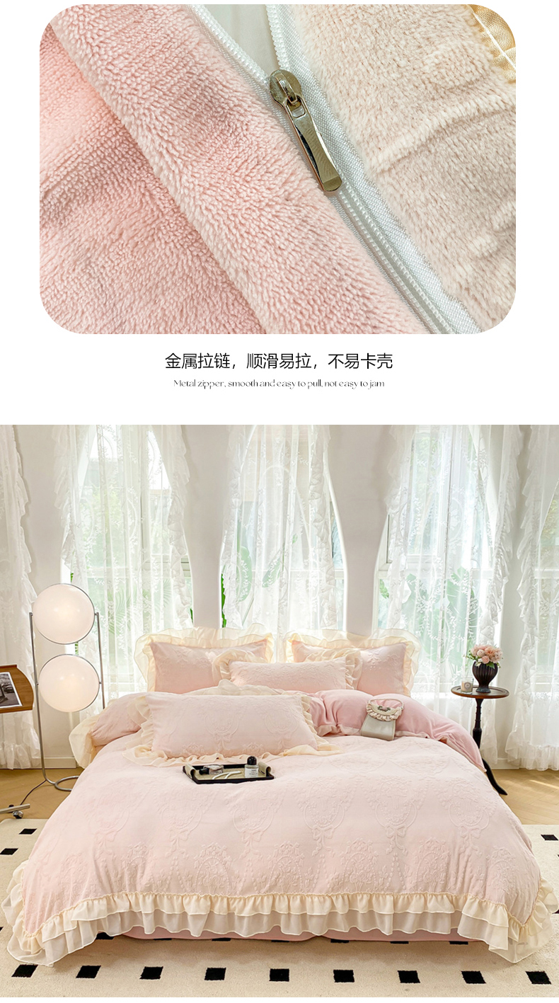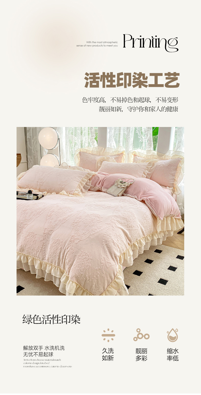 商品名称:大米家居 2023新款法式双层边230克雕花牛奶绒蔷薇花语系列四件套 蔷薇花语-白桃粉