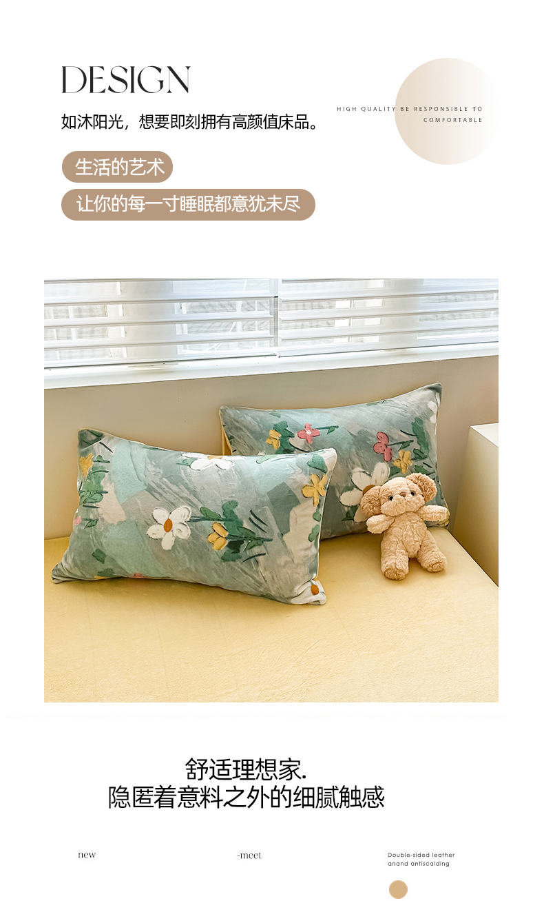 (总)简宜家居(朝初家纺) 2023新款牛奶绒四件套系列,爱觅,百草园,绿茵,萌芽,蜜爱,蜜棠,秋棠,手绘花,旺财,咻咻熊,艺术家,脏脏熊