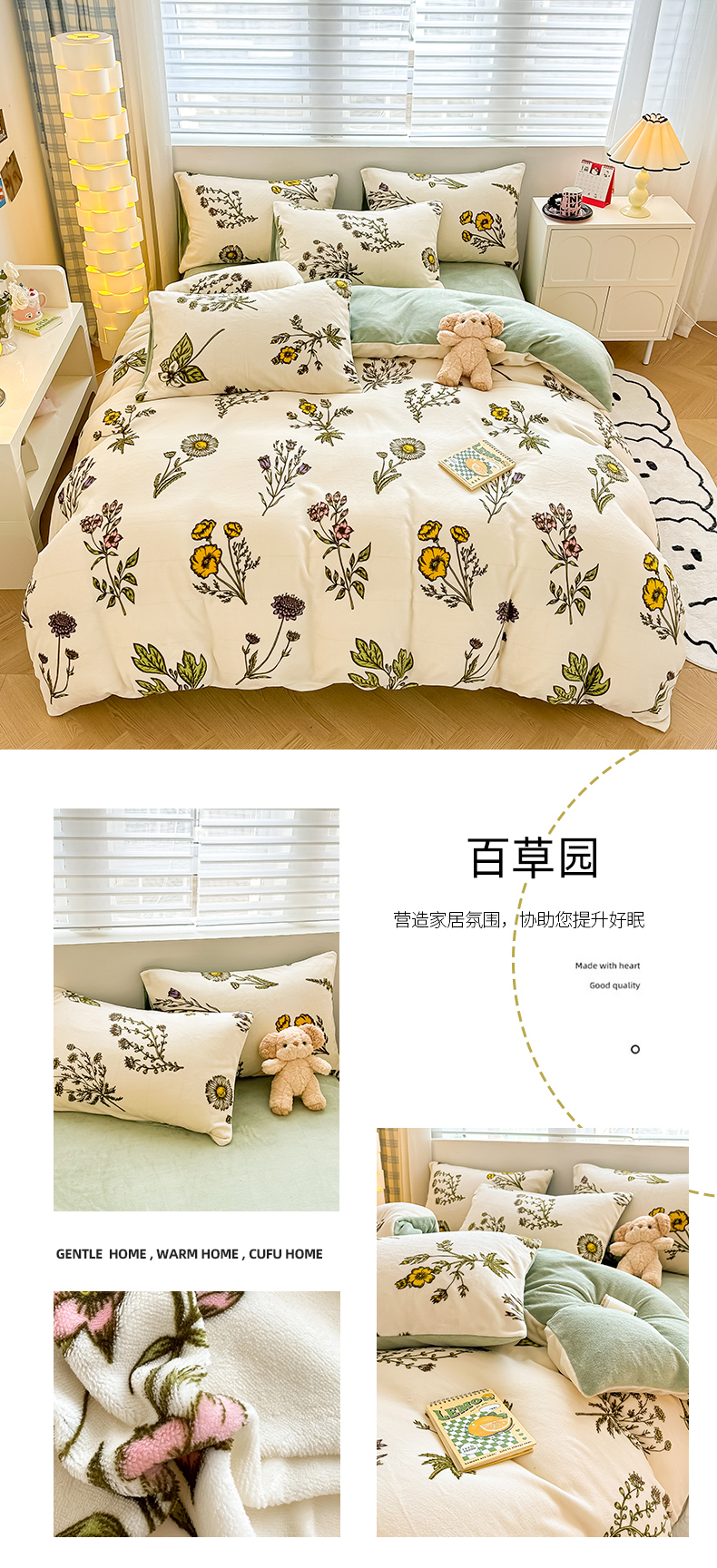 (总)简宜家居(朝初家纺) 2025新款印花兔兔绒+纯色牛奶绒双拼四件套,蝶影暖绒,米绒花絮,墨绒花-奶白,秋枝果绿,秋枝焦糖,一支秀-咖