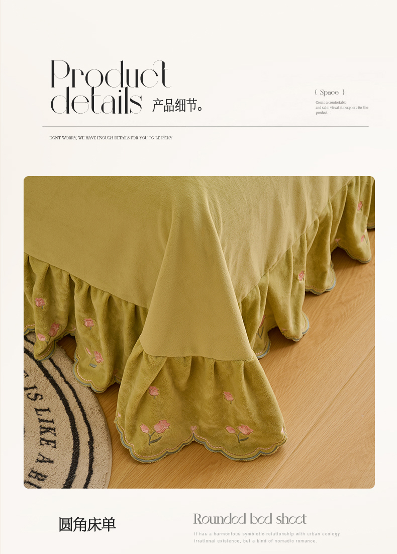 (总)恒爱 2022秋冬水晶绒翩翩花舞夹棉床裙四件套,大红色,豆沙红,橄榄绿,公主粉,桔色,咖啡色,孔雀绿,拉菲红,罗兰紫,玫红色,美人玉,米白色,米驼色,抹茶绿,浅灰色,紫色