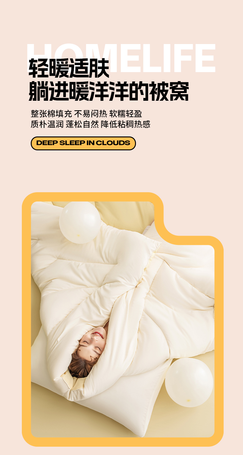 商品名称:暖阳 2025新款多巴胺奶盖被50%棉花被被子冬被加厚被芯 芝士奶盖