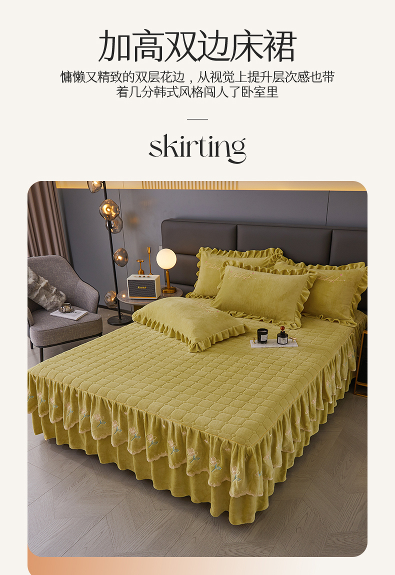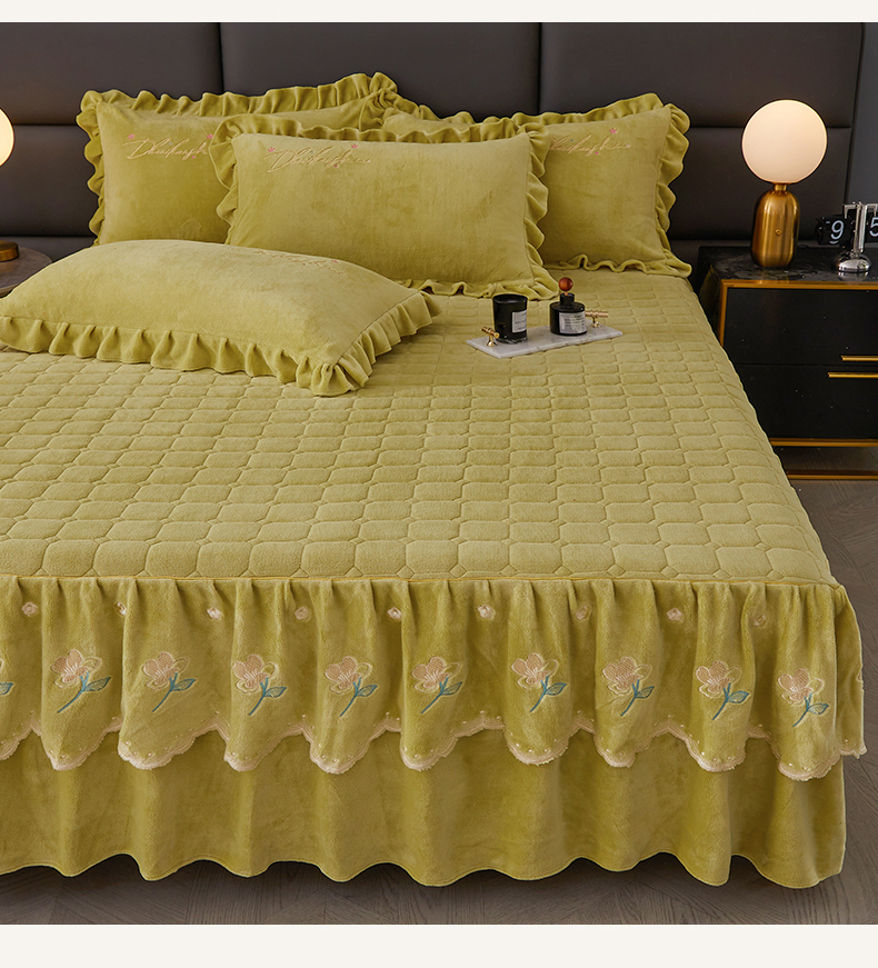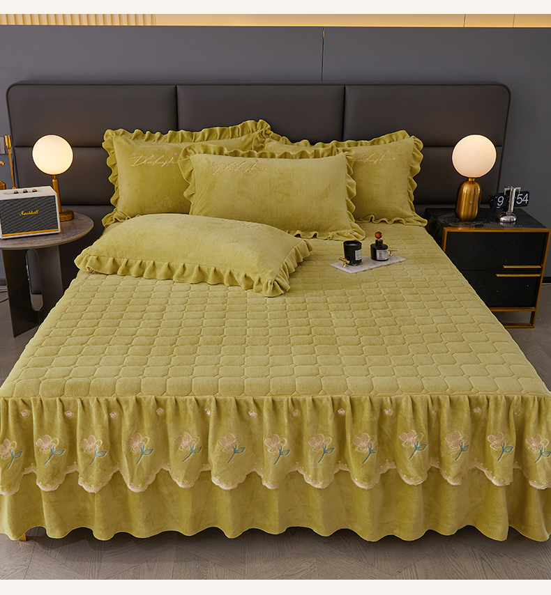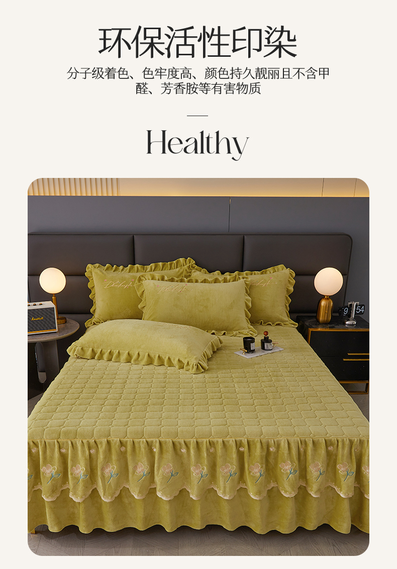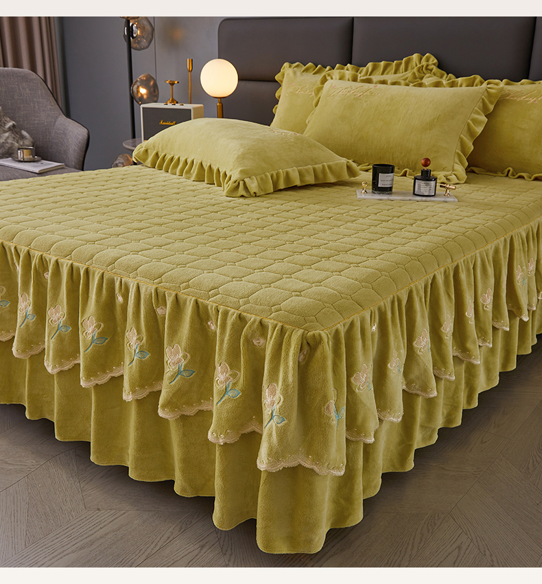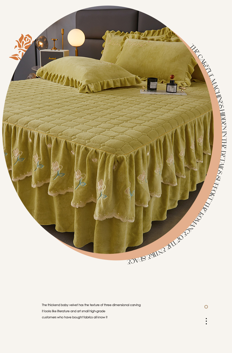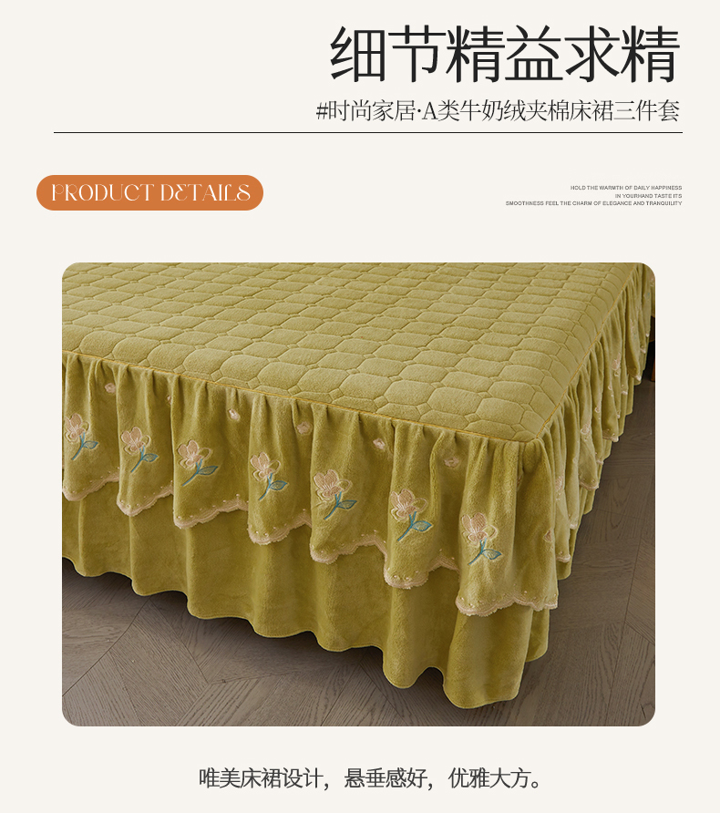 当前位置: 91家纺网 > 商品网购 > 床品套件 > 三件套 > 恒爱家纺 2023新款牡丹花开床裙牛奶绒三件套 暗黄