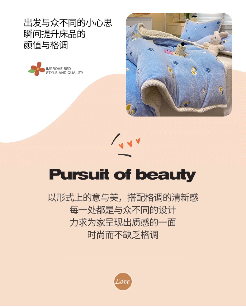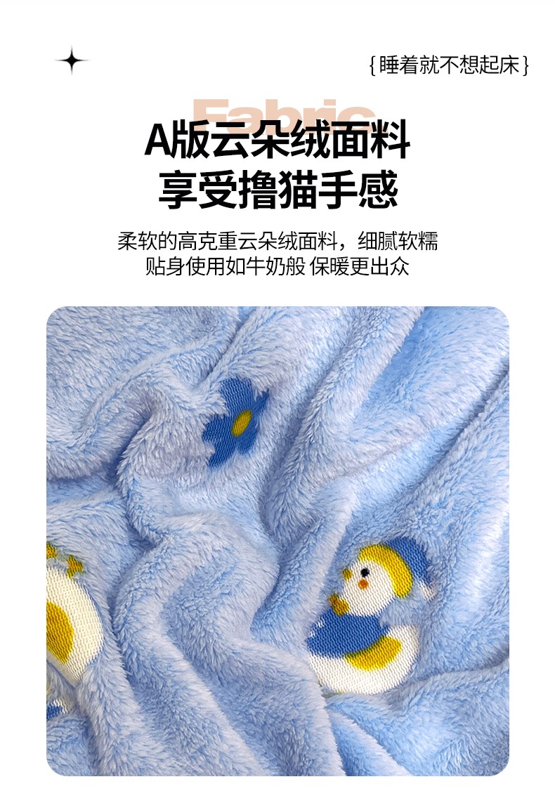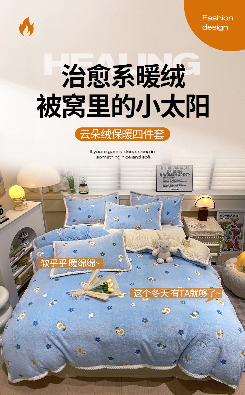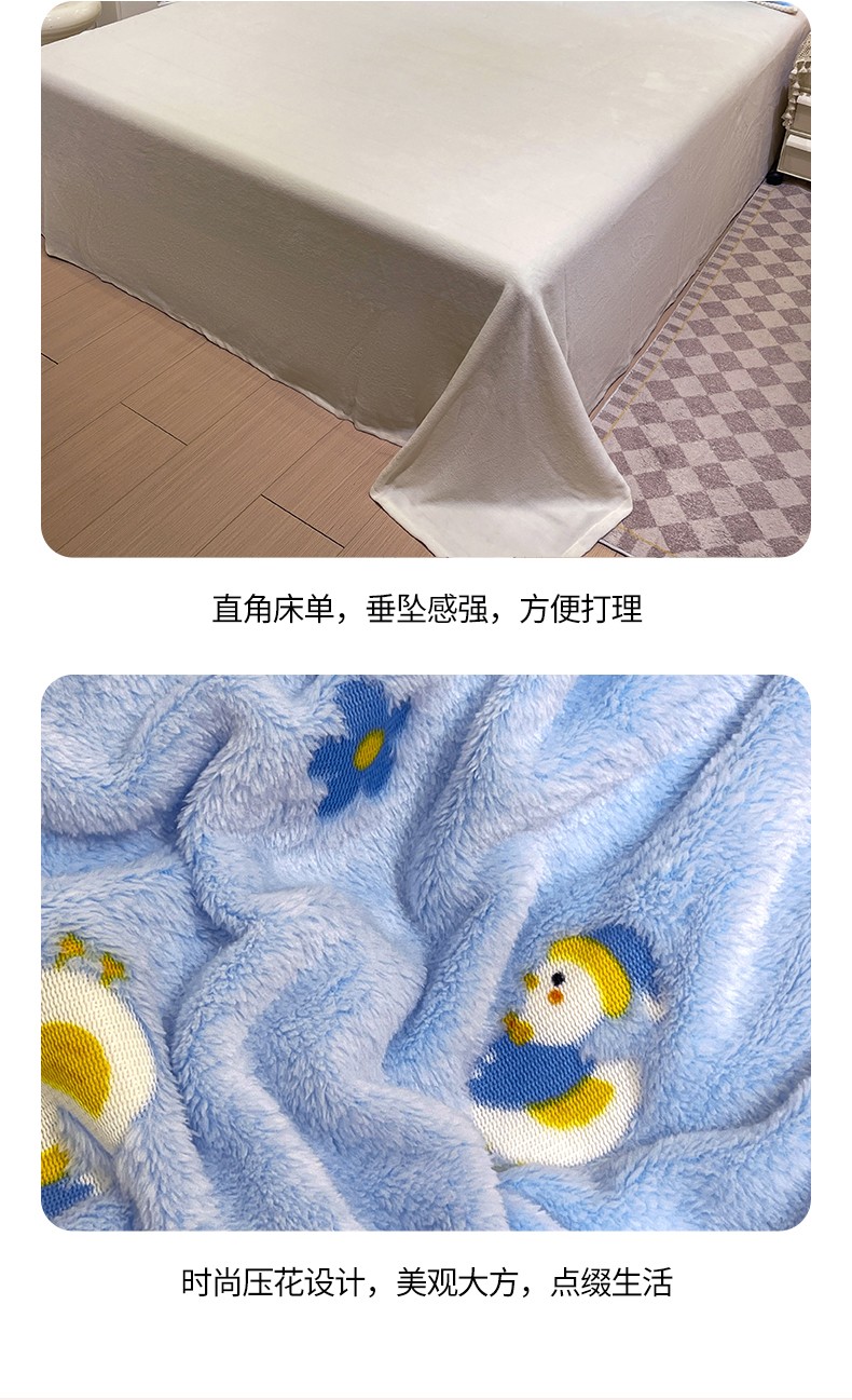 当前位置: 91家纺网 > 商品网购 > 床品套件 > 四件套 > 牛奶绒四件套 > 锦威郎 2023新款云朵绒保暖牛奶绒毛毯绒单被套加绒加厚法莱绒四件套 鸭子蓝