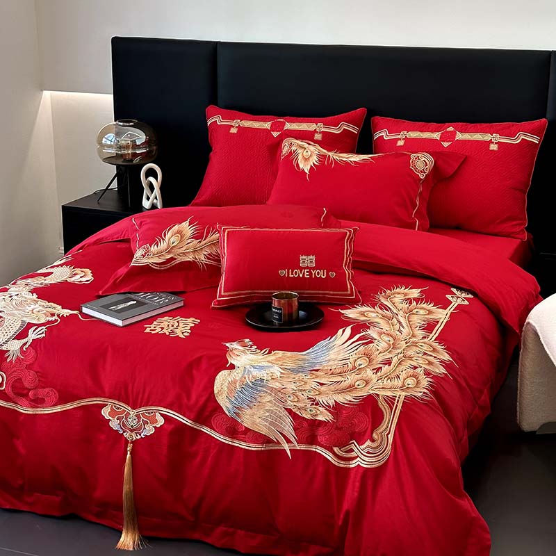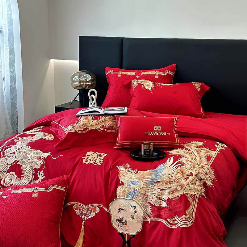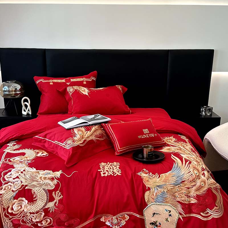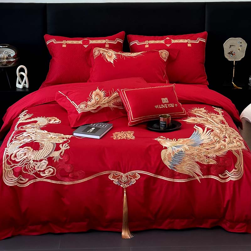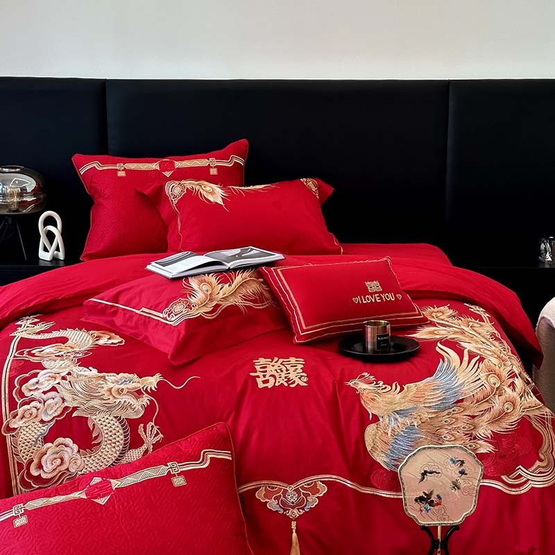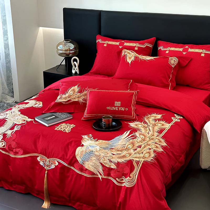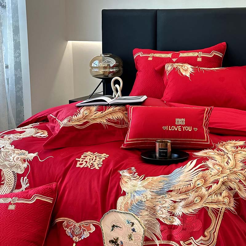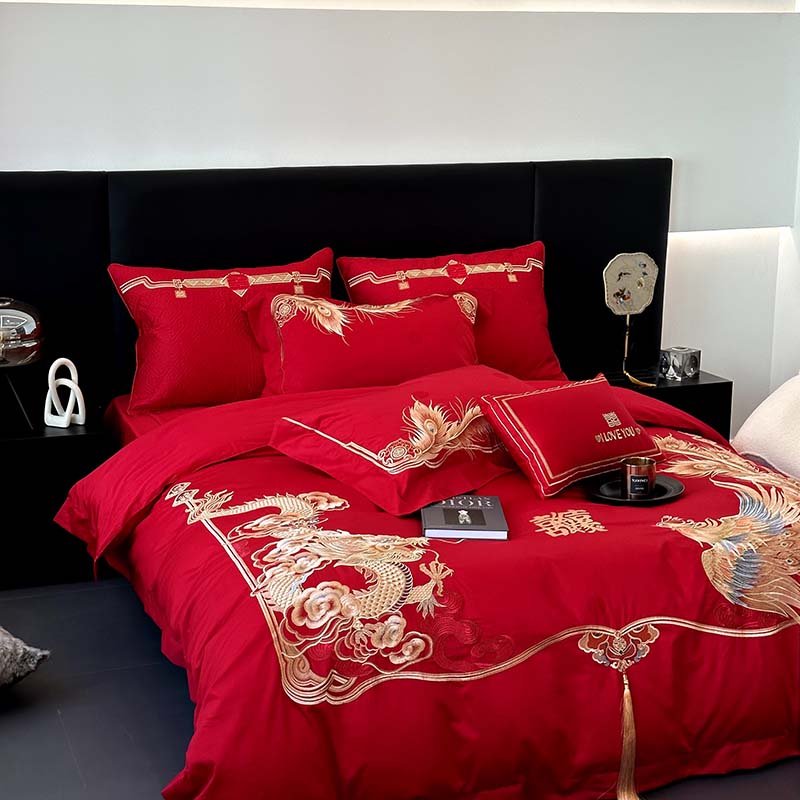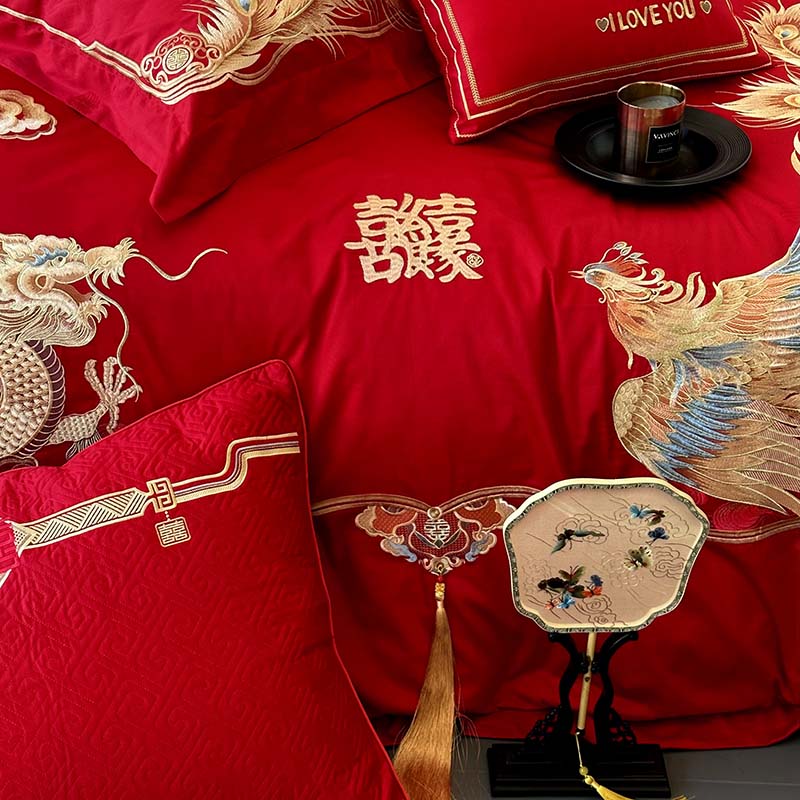 当前位置: 91家纺网 > 商品网购 > 床品套件 > 四件套 > 婚庆四件套 > JUICY 橘滋家纺 2023新款轻奢高端进口长绒棉刺绣婚庆四件套 龙腾凤跃