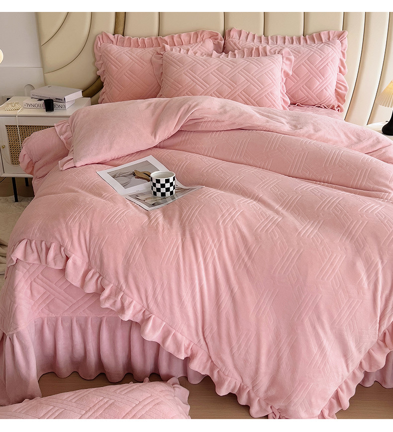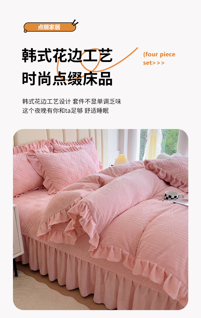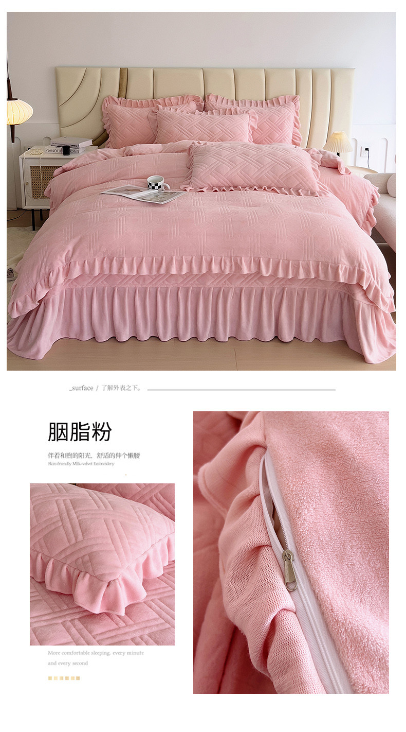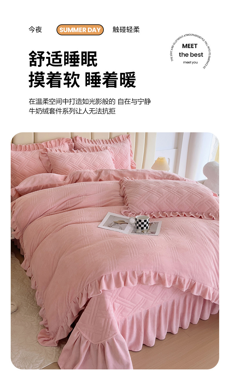 当前位置: 91家纺网 > 商品网购 > 床品套件 > 四件套 > 牛奶绒四件套 > 十个点家纺 2024新款牛奶绒欣雅床盖四件套 欣雅-胭脂粉