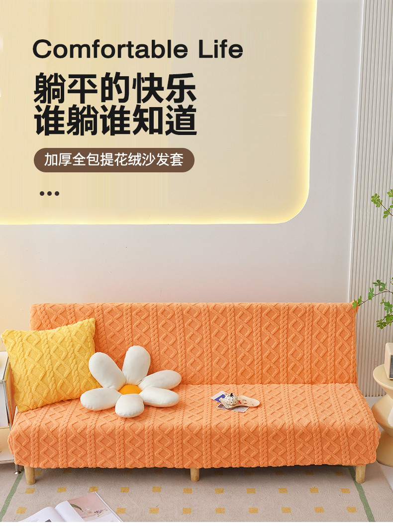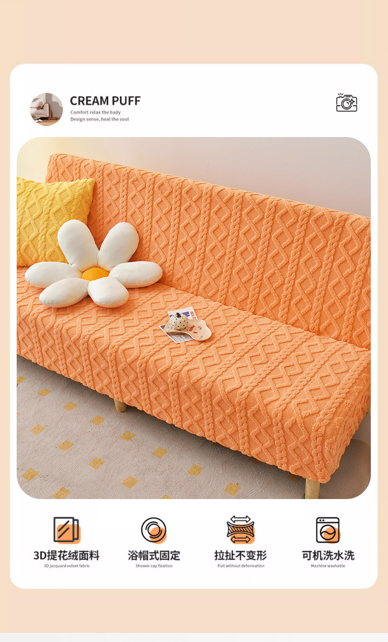 商品名称:启博家纺 2023新款简约提花绒无扶手沙发套 活力橙