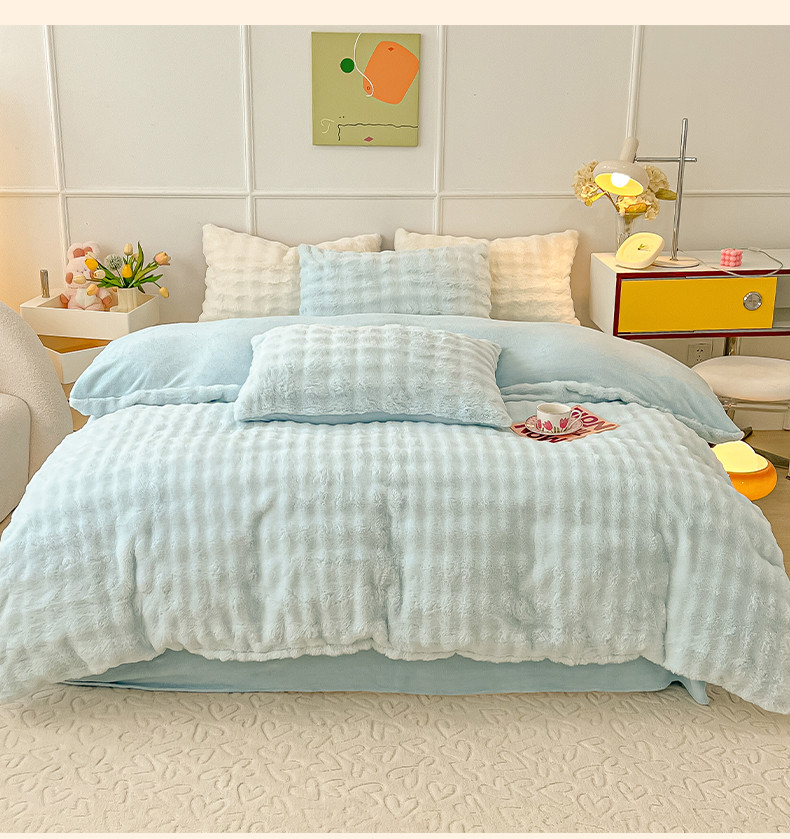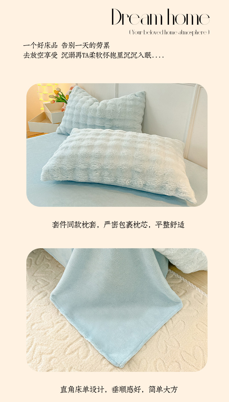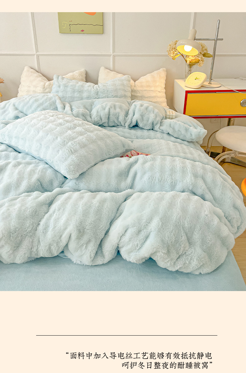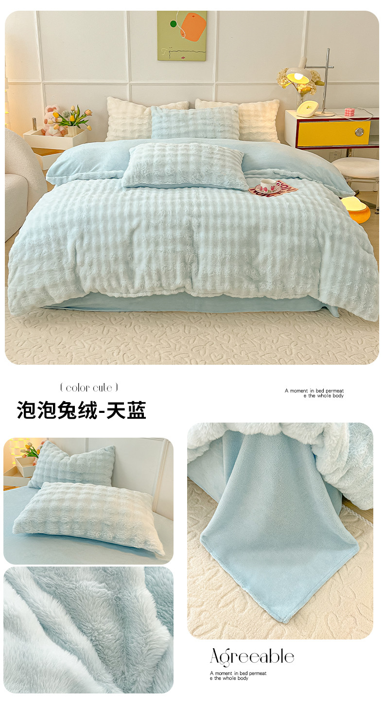商品名称:韩都家居 2023新款泡泡兔绒牛奶绒四件套 泡泡兔绒-天蓝