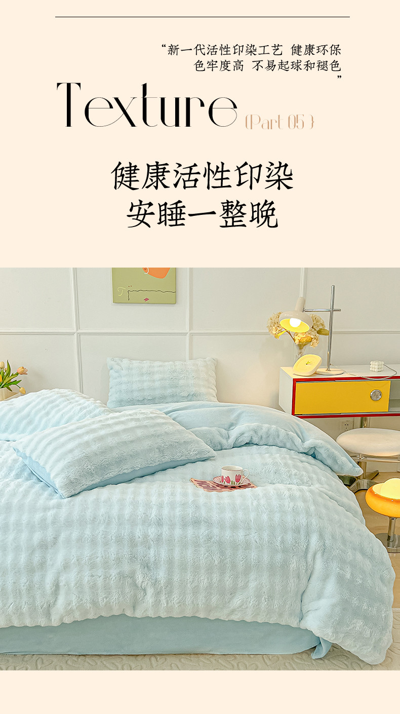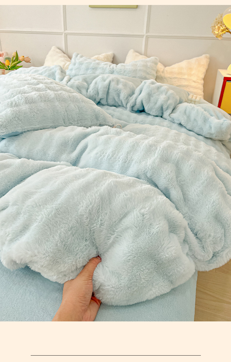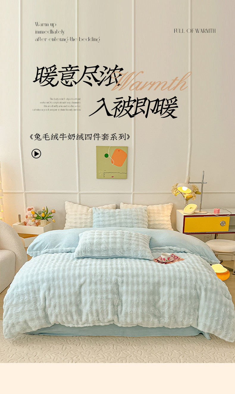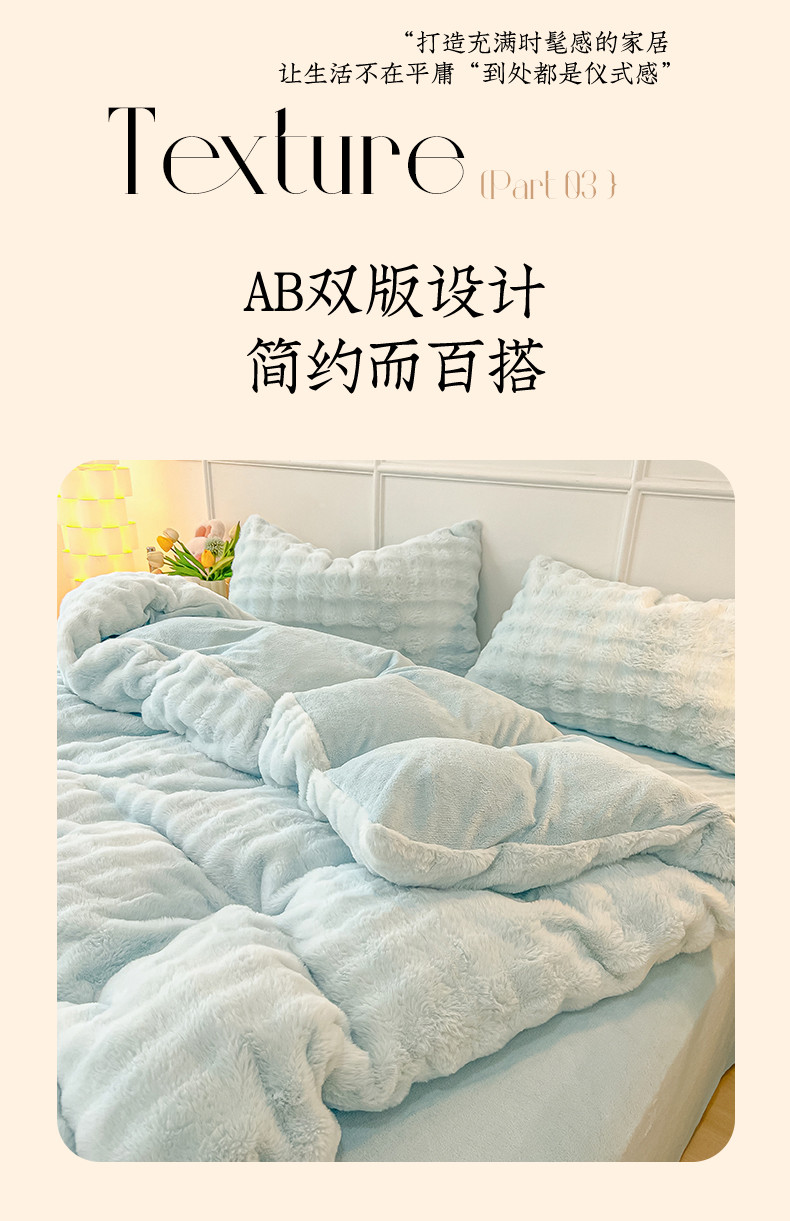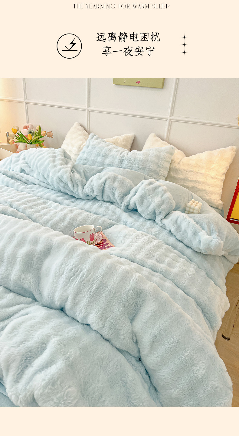 商品名称:韩都家居 2023新款泡泡兔绒牛奶绒四件套 泡泡兔绒-天蓝