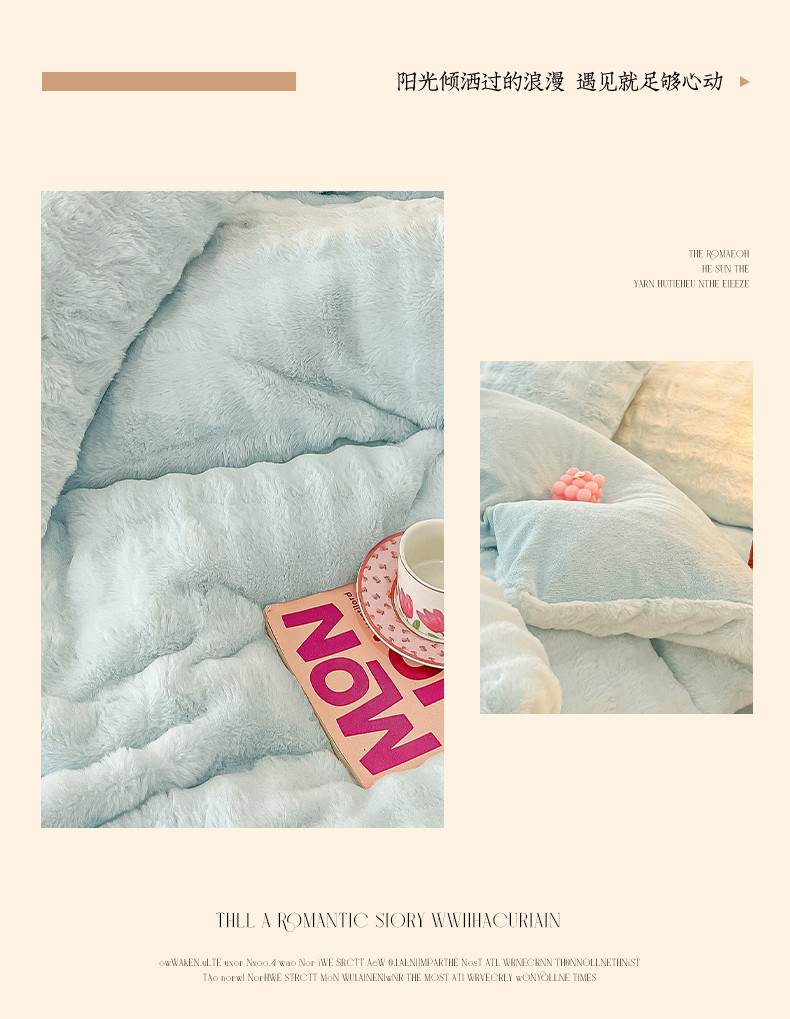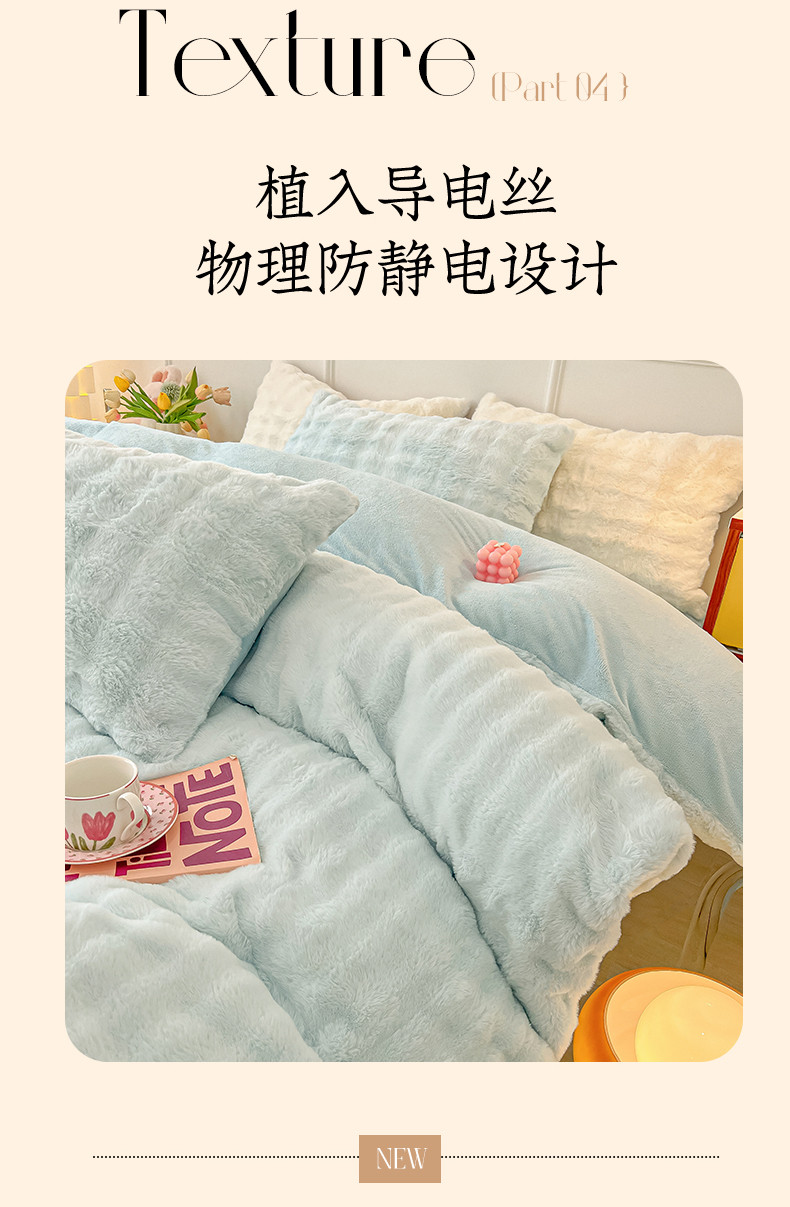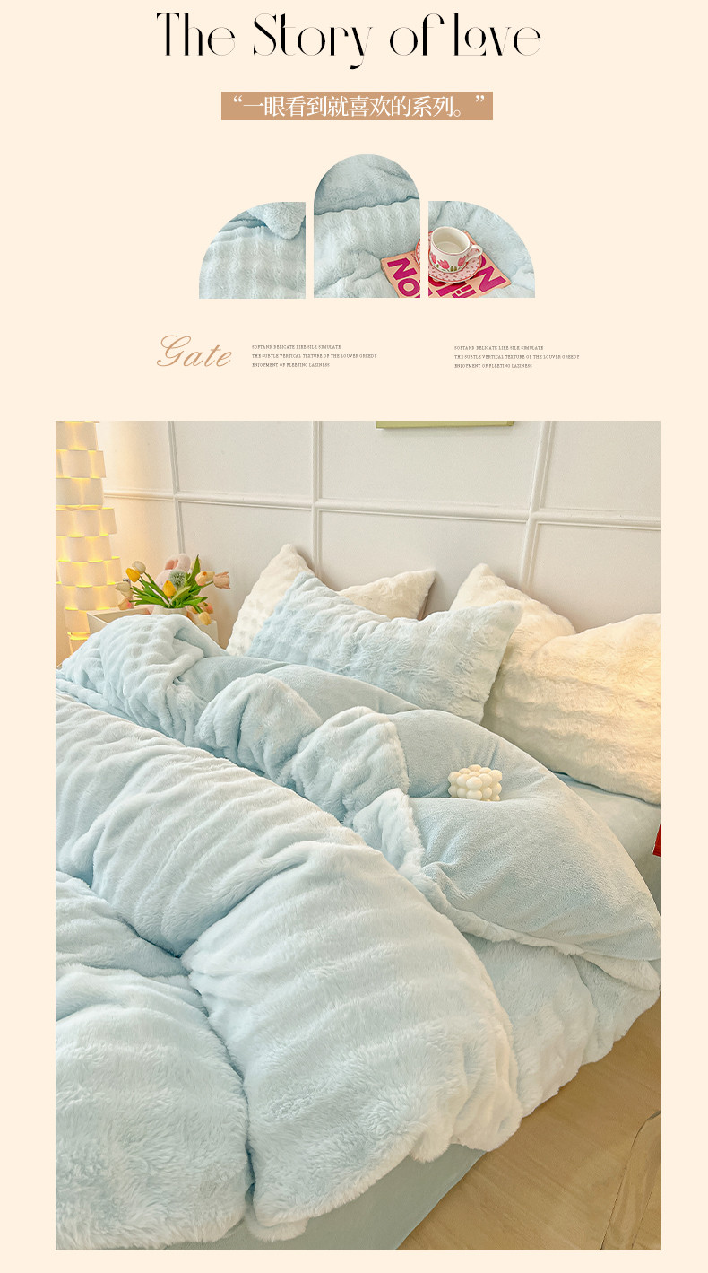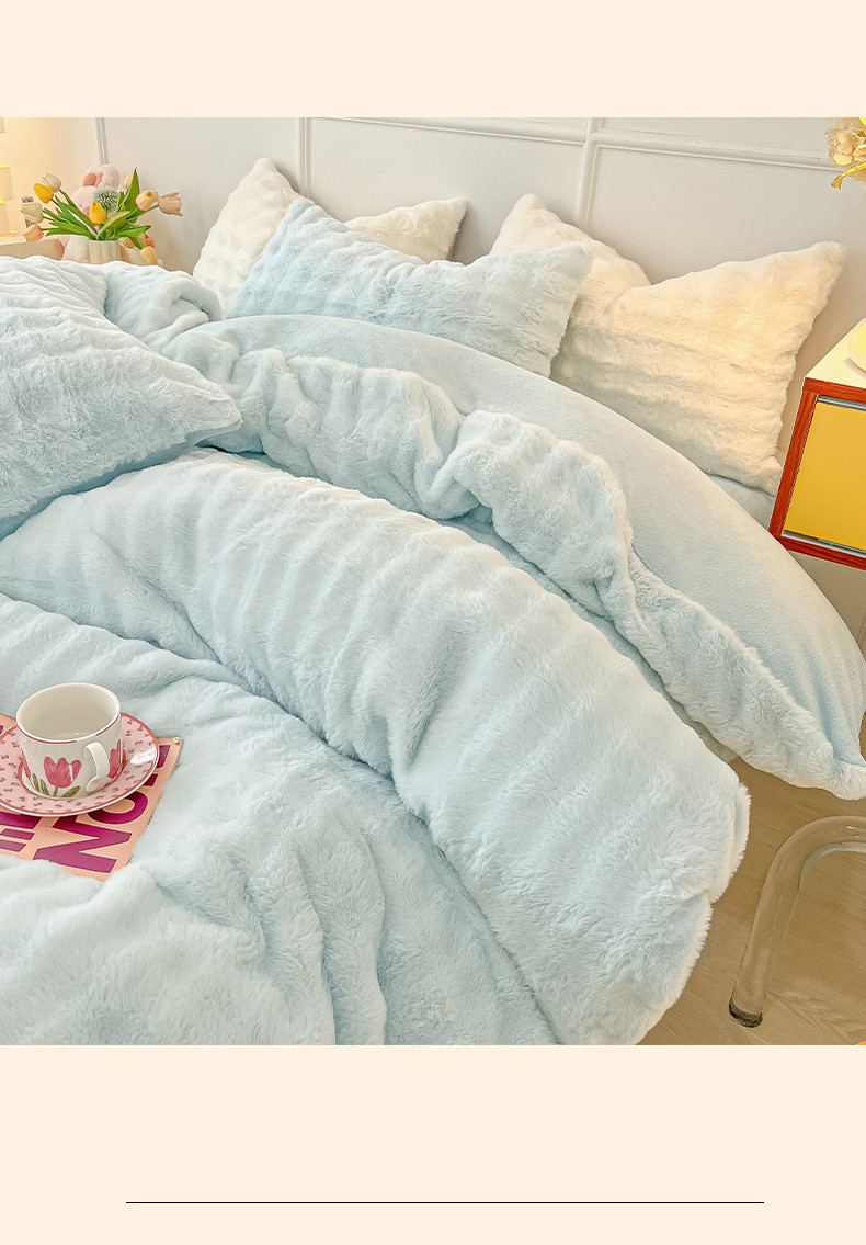 商品名称:韩都家居 2023新款泡泡兔绒牛奶绒四件套 泡泡兔绒-天蓝