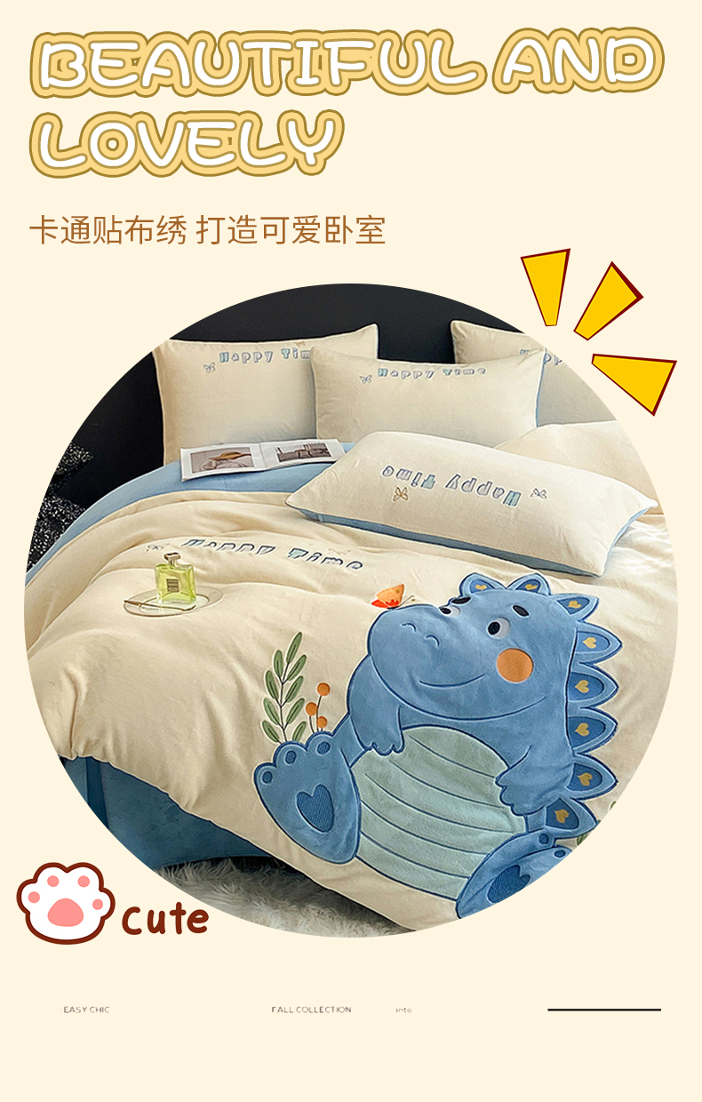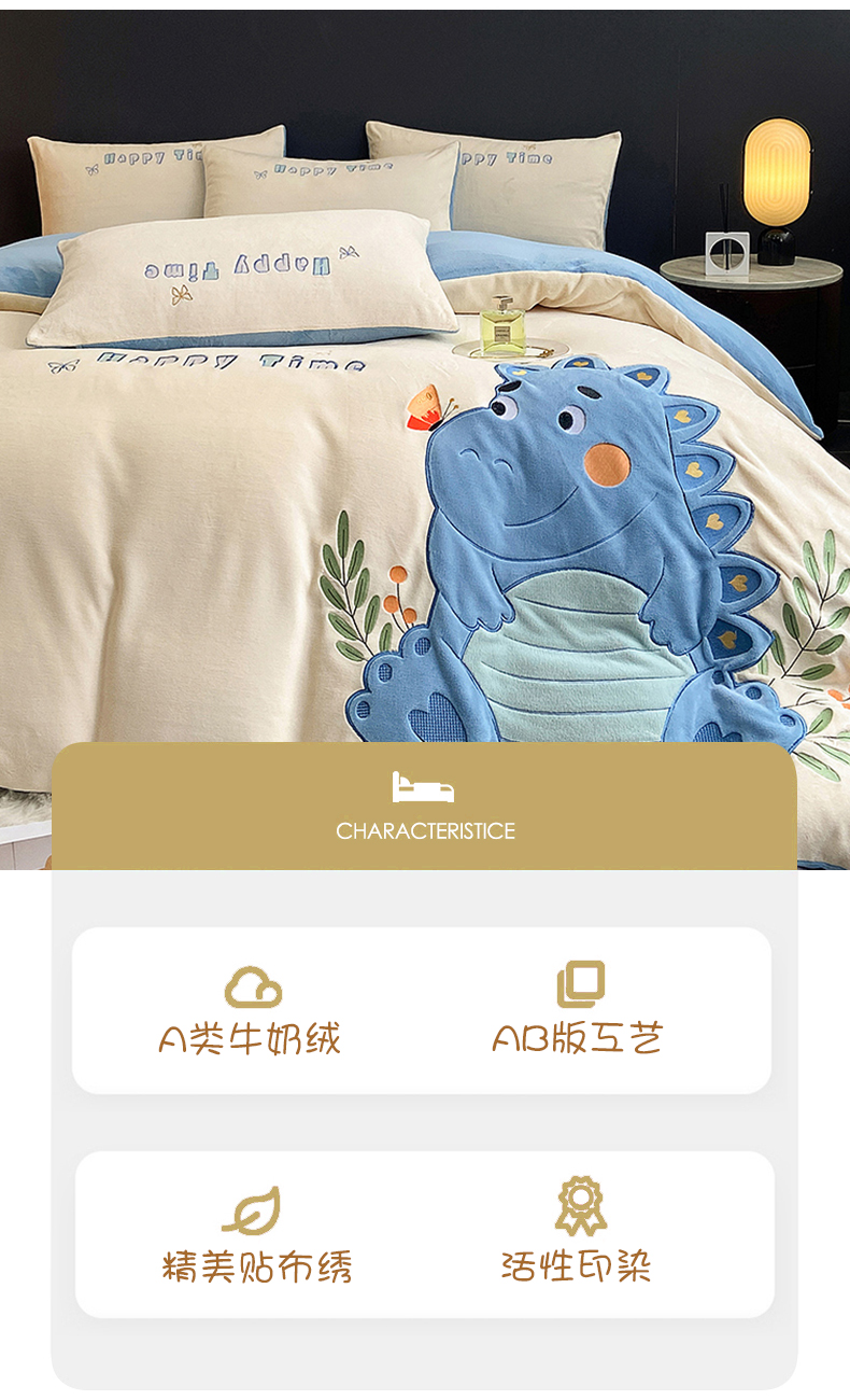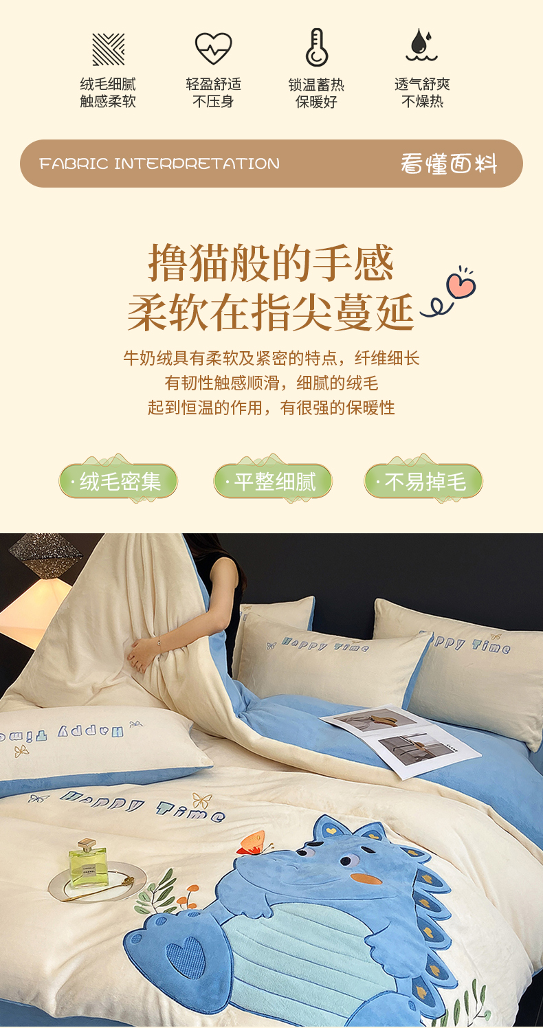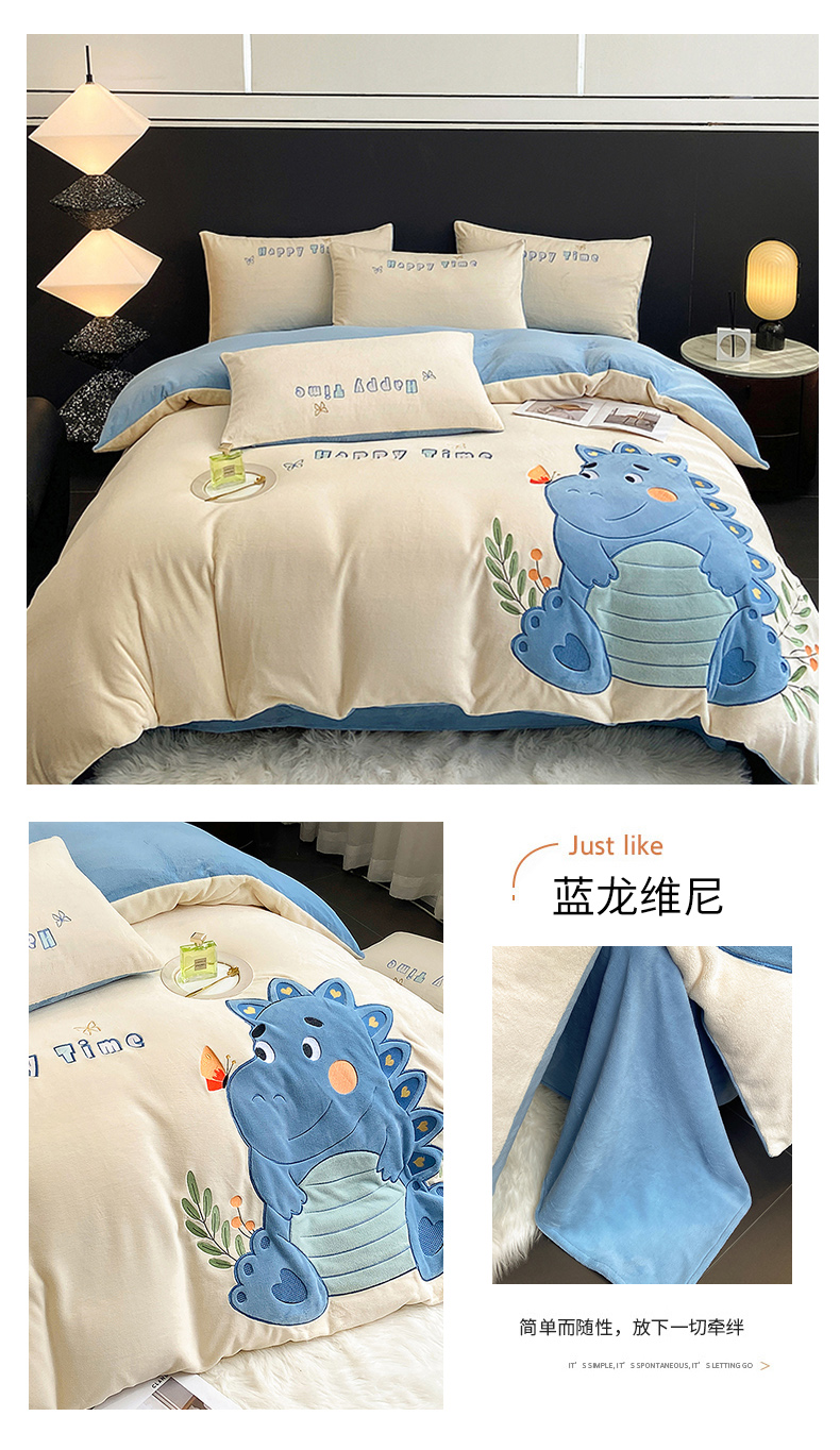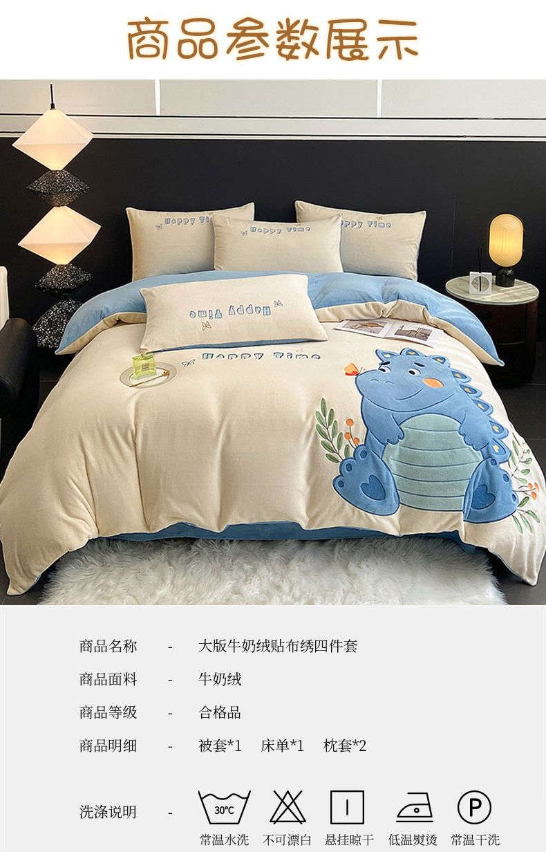 当前位置: 91家纺网 > 商品网购 > 床品套件 > 四件套 > 牛奶绒四件套 > 家居1号 2024新款牛奶绒龙龙贴布绣四件套 蓝龙维尼