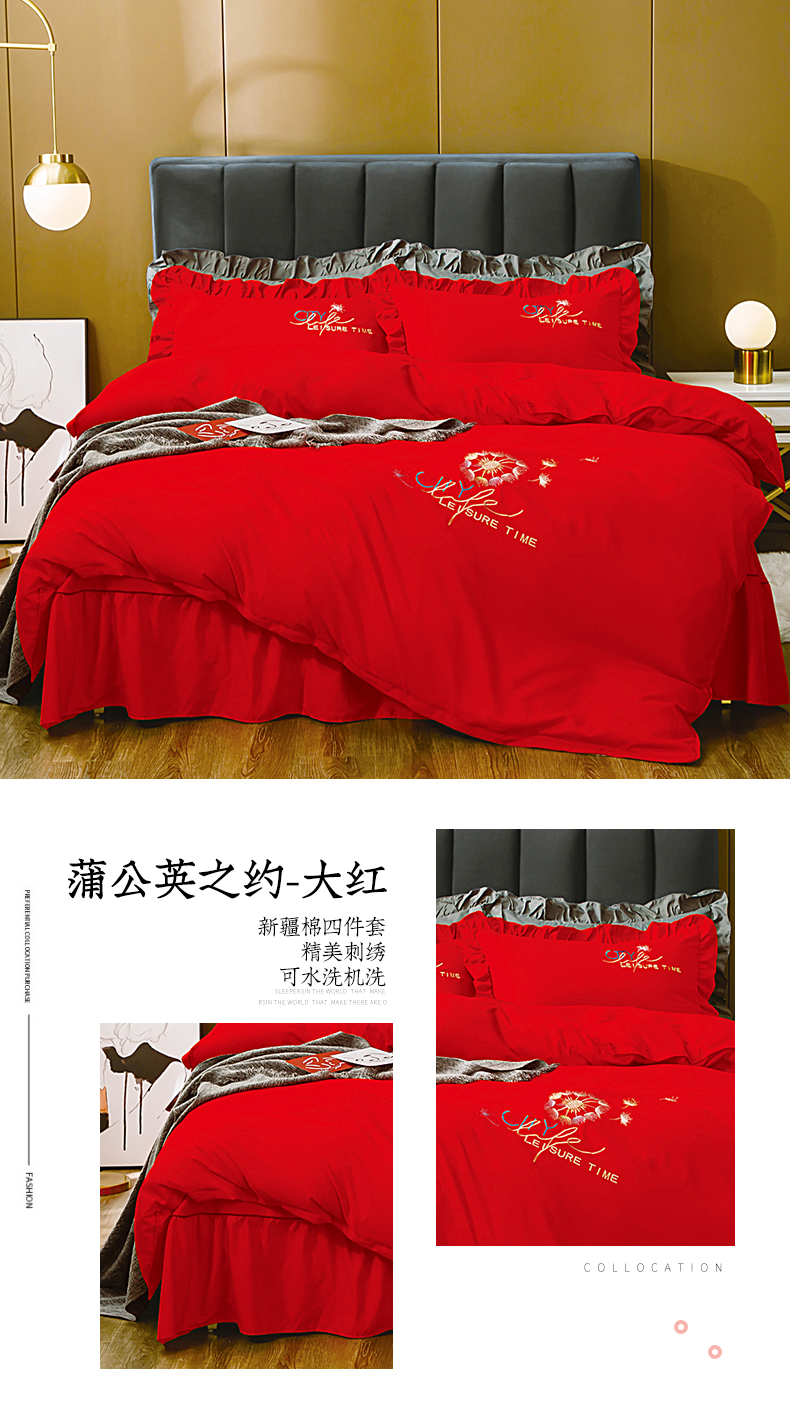 商品名称:伊而梦蚊帐 2023新款仿真丝刺绣四件套--蒲公英之约 蒲公英之约-大红