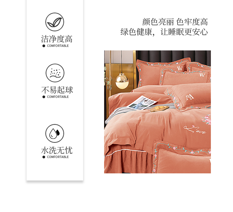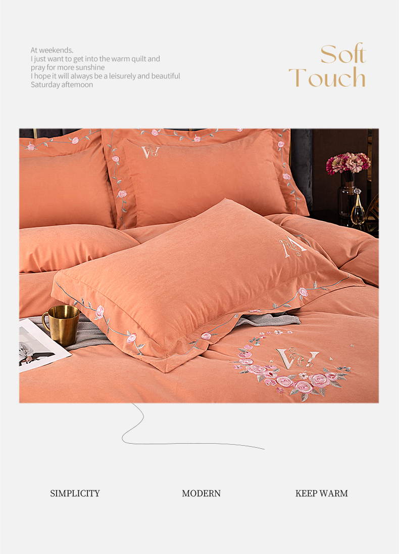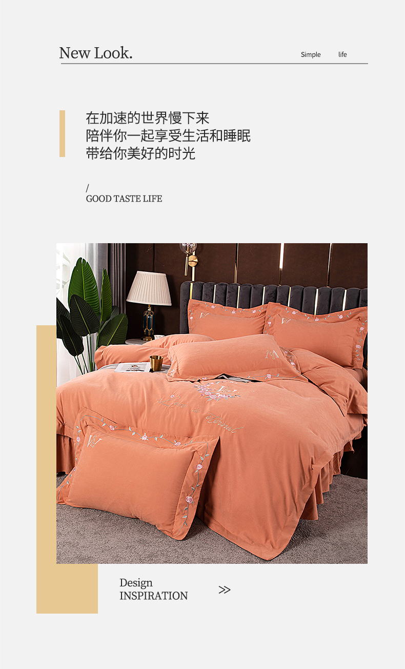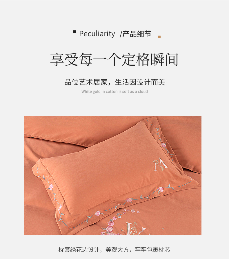 商品名称:伊而梦 2023新款锦棉宽边绣花四件套--浪漫情缘 浪漫情缘-暖桔色