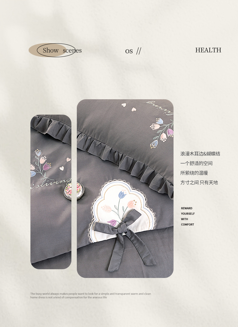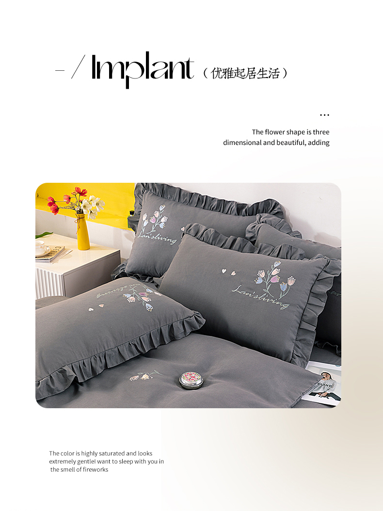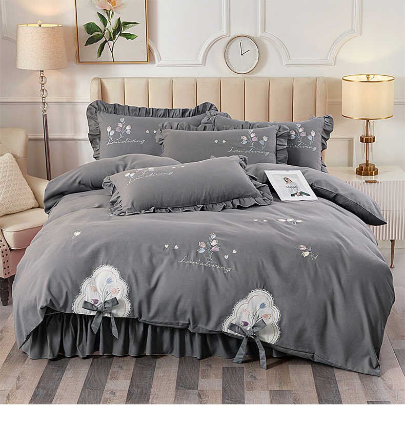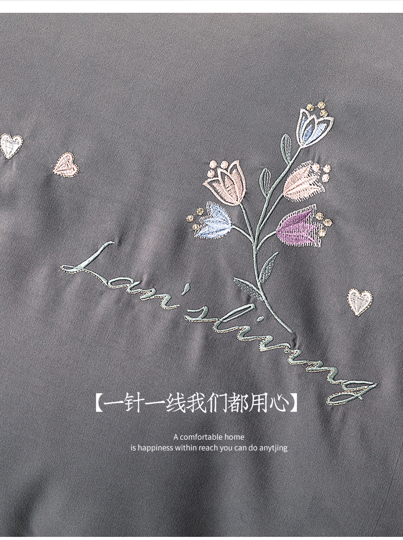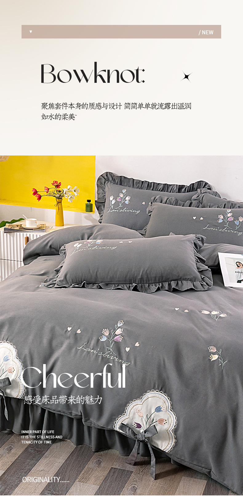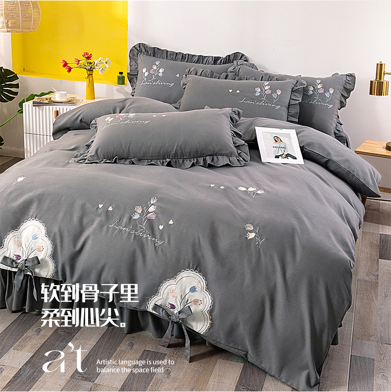 伊而梦蚊帐 2023新款磨毛木耳边绣花贴布绣四件套--忆青春 忆青春-时尚灰