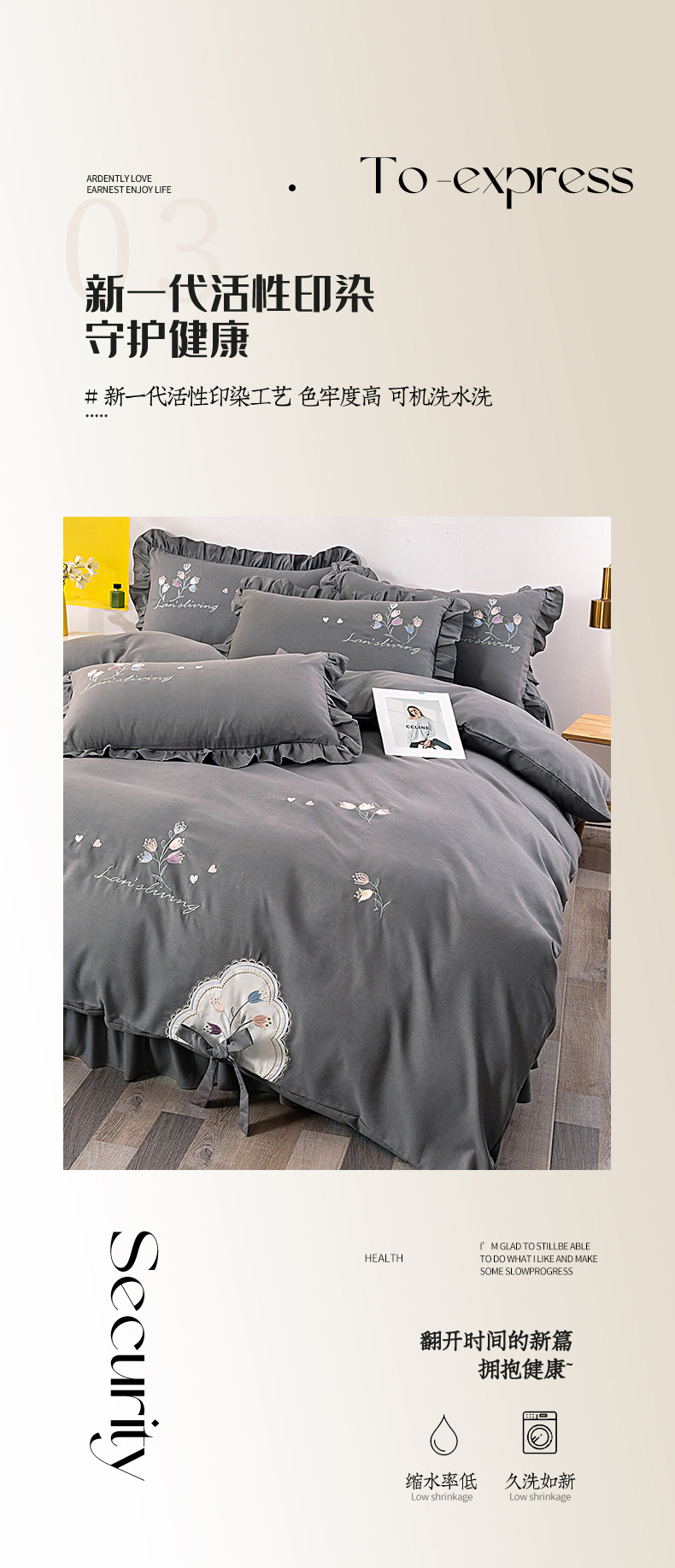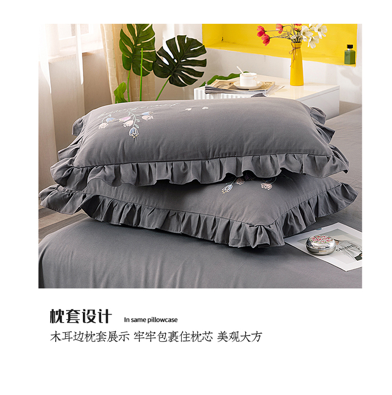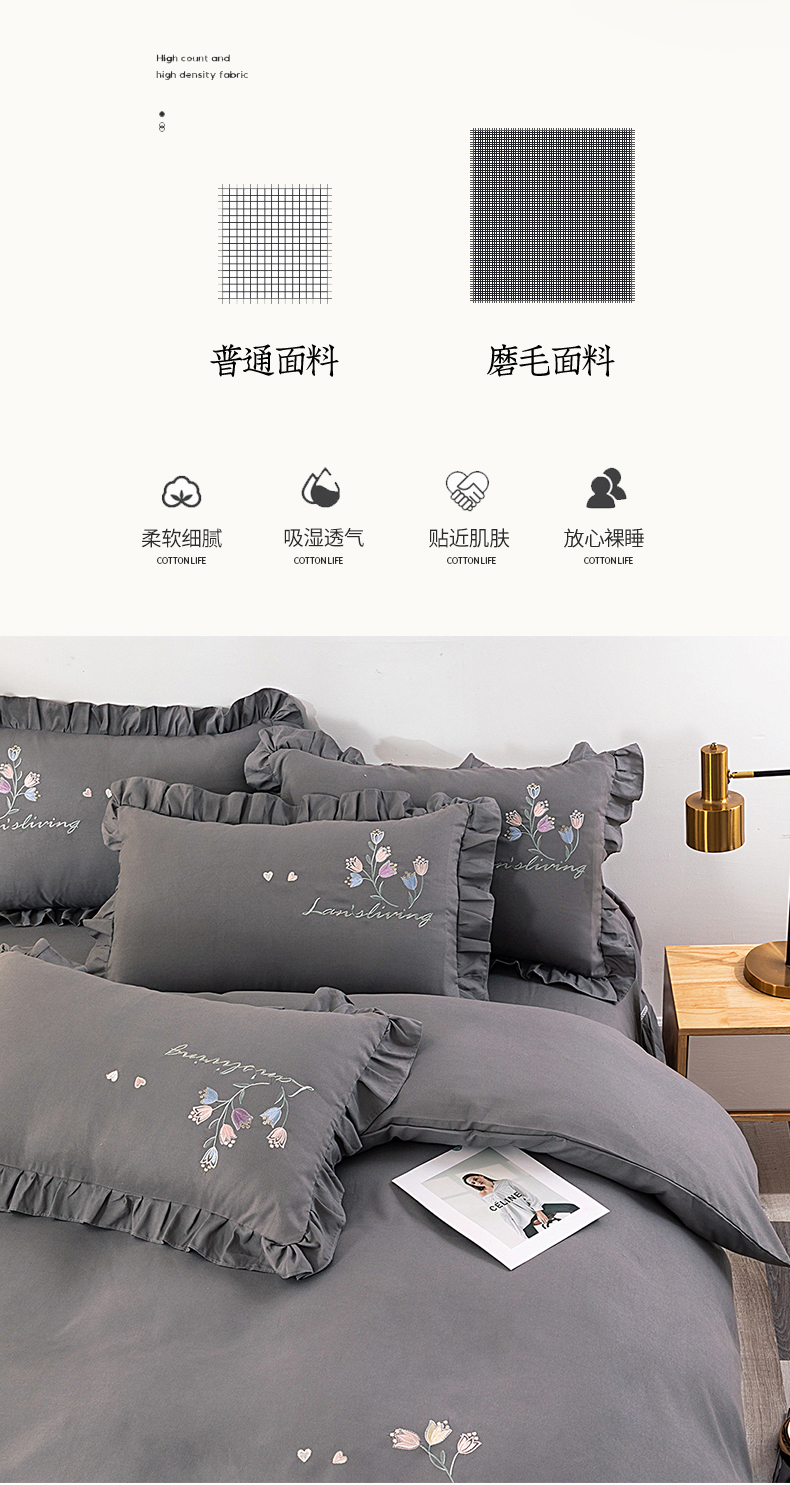商品名称:伊而梦蚊帐 2023新款磨毛木耳边绣花贴布绣四件套--忆青春 忆青春-时尚灰