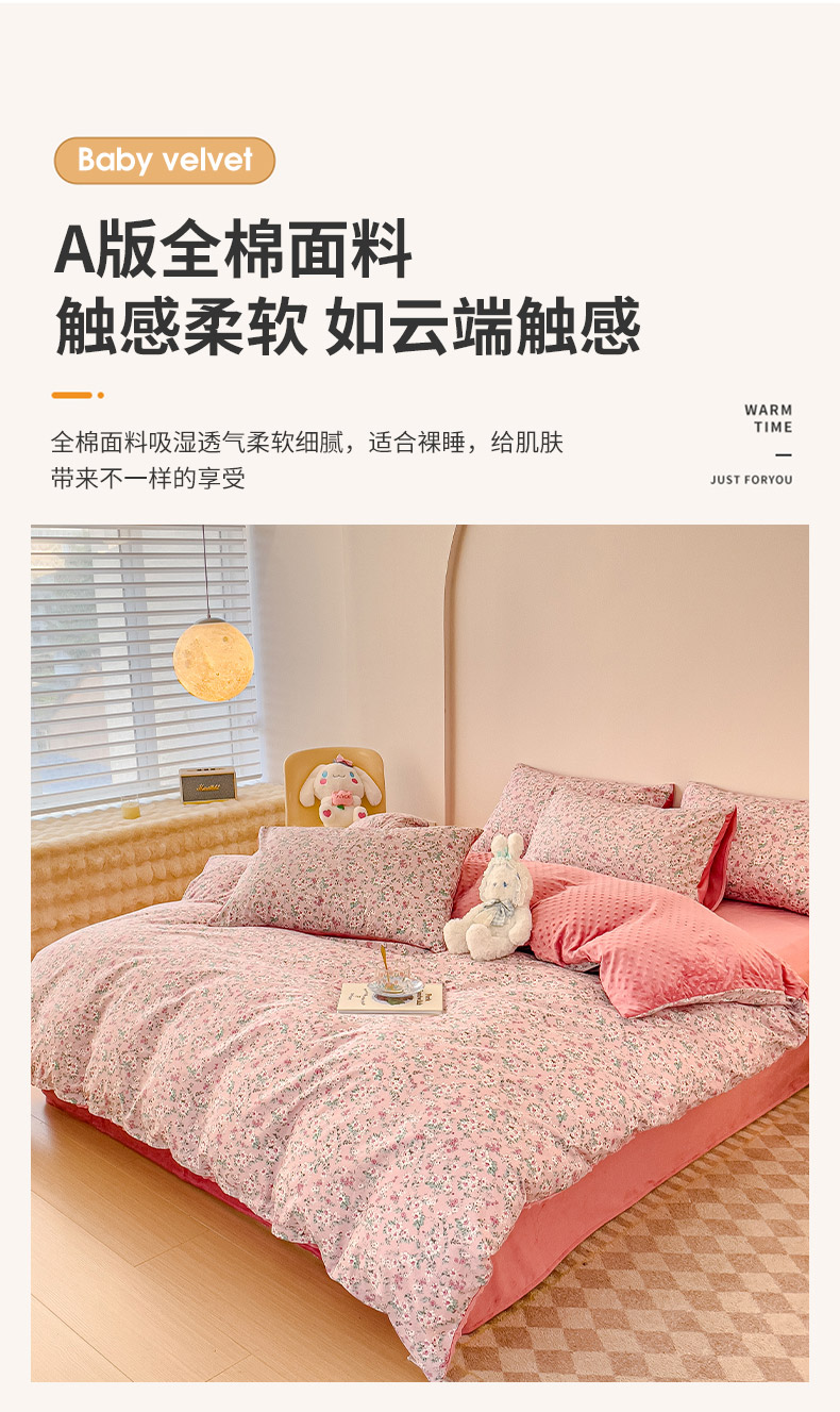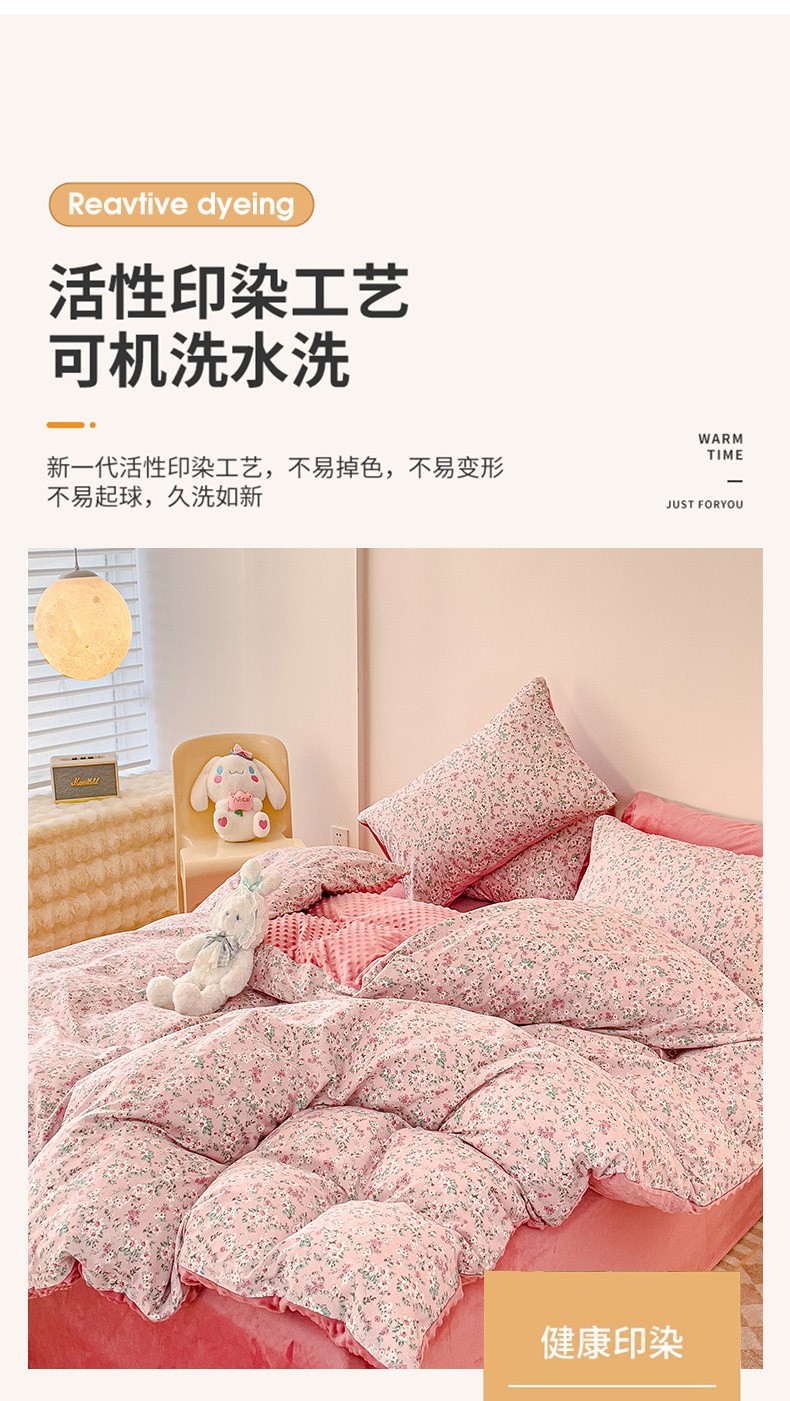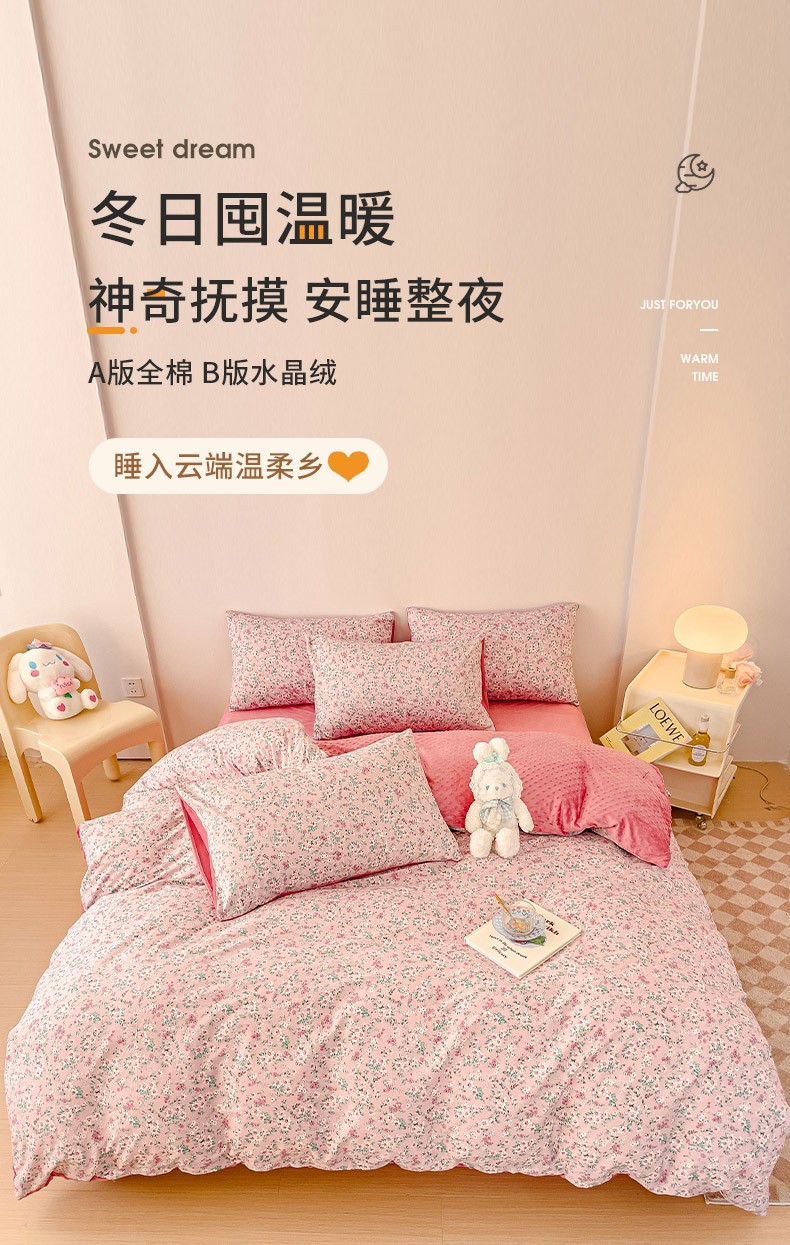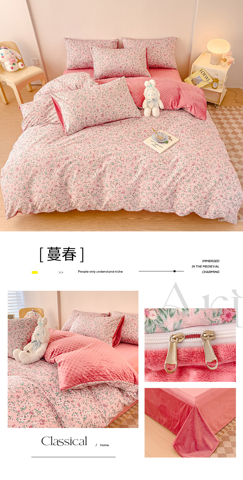 千朵 2023新款棉加绒豆豆绒四件套 蔓春