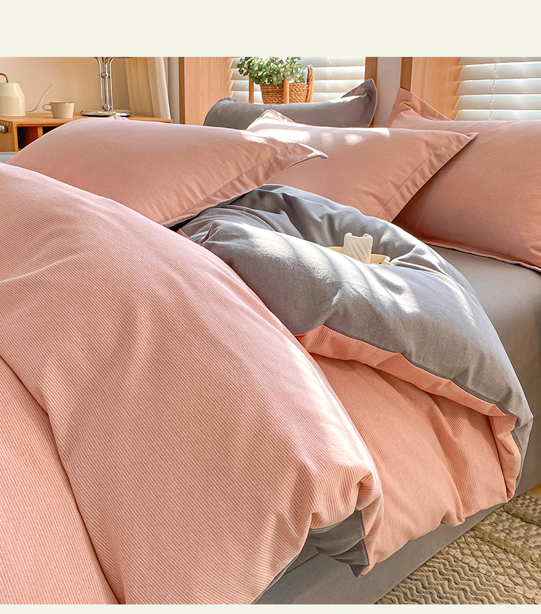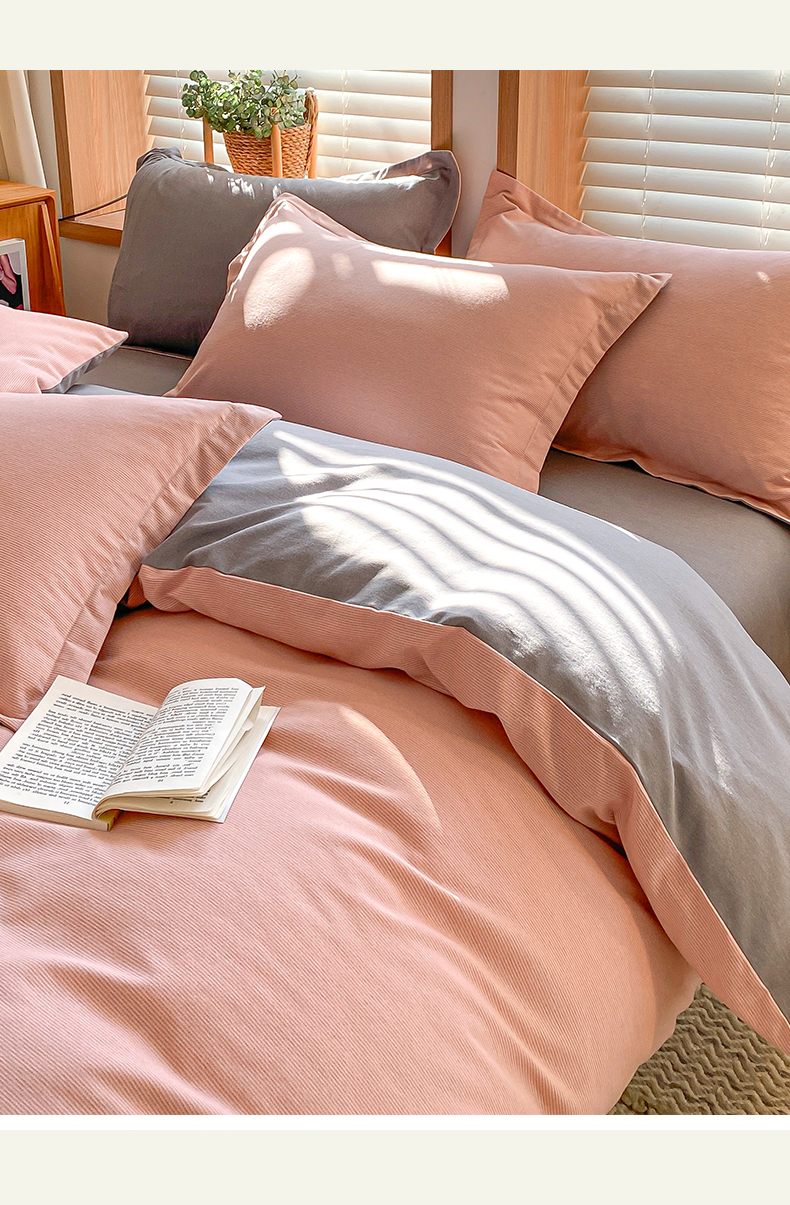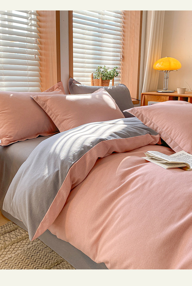卧趣家纺 2023新款全棉磨毛简约印花四件套 时尚条纹-粉