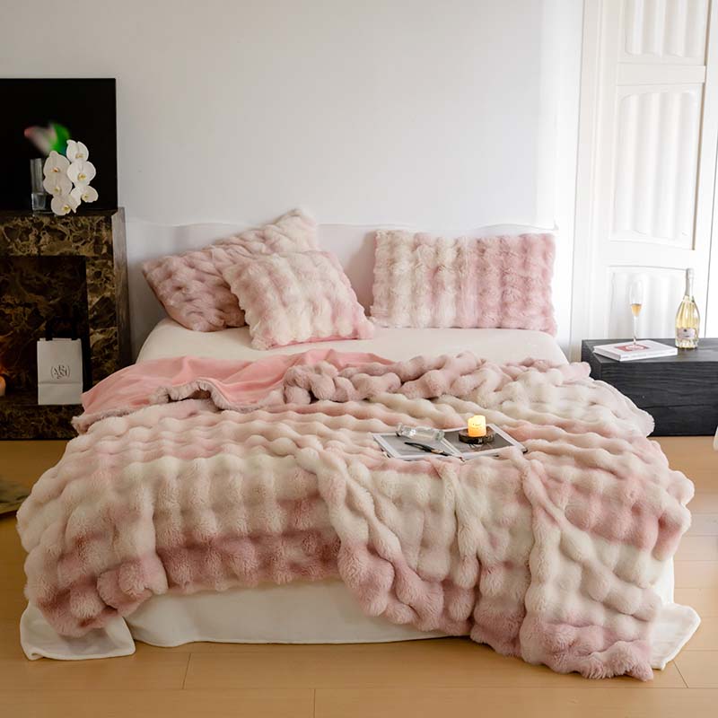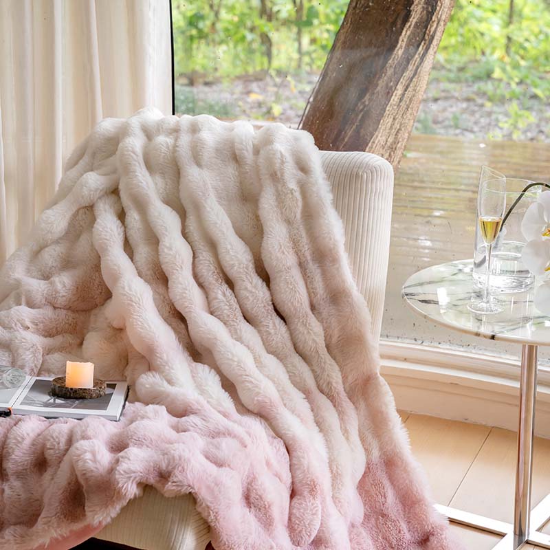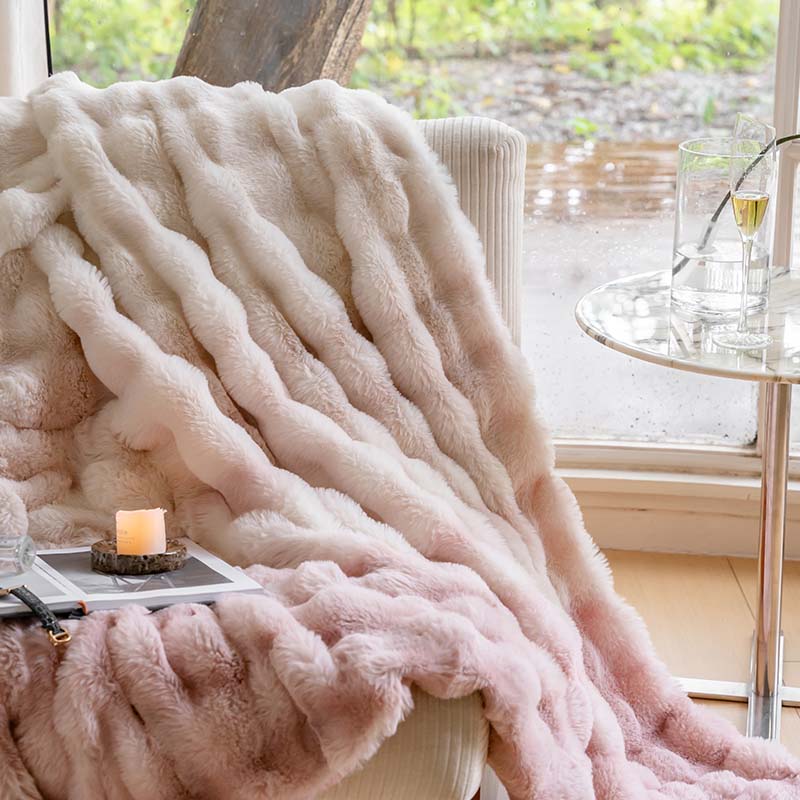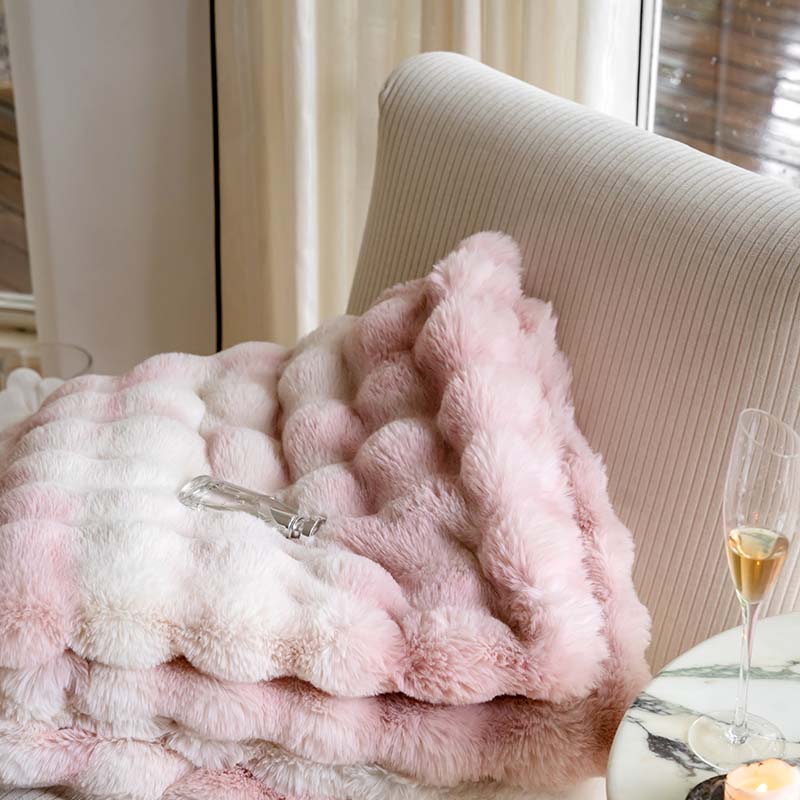 宜代光年 2023新款托斯卡纳仿兔绒毛毯-炫彩 炫彩-粉