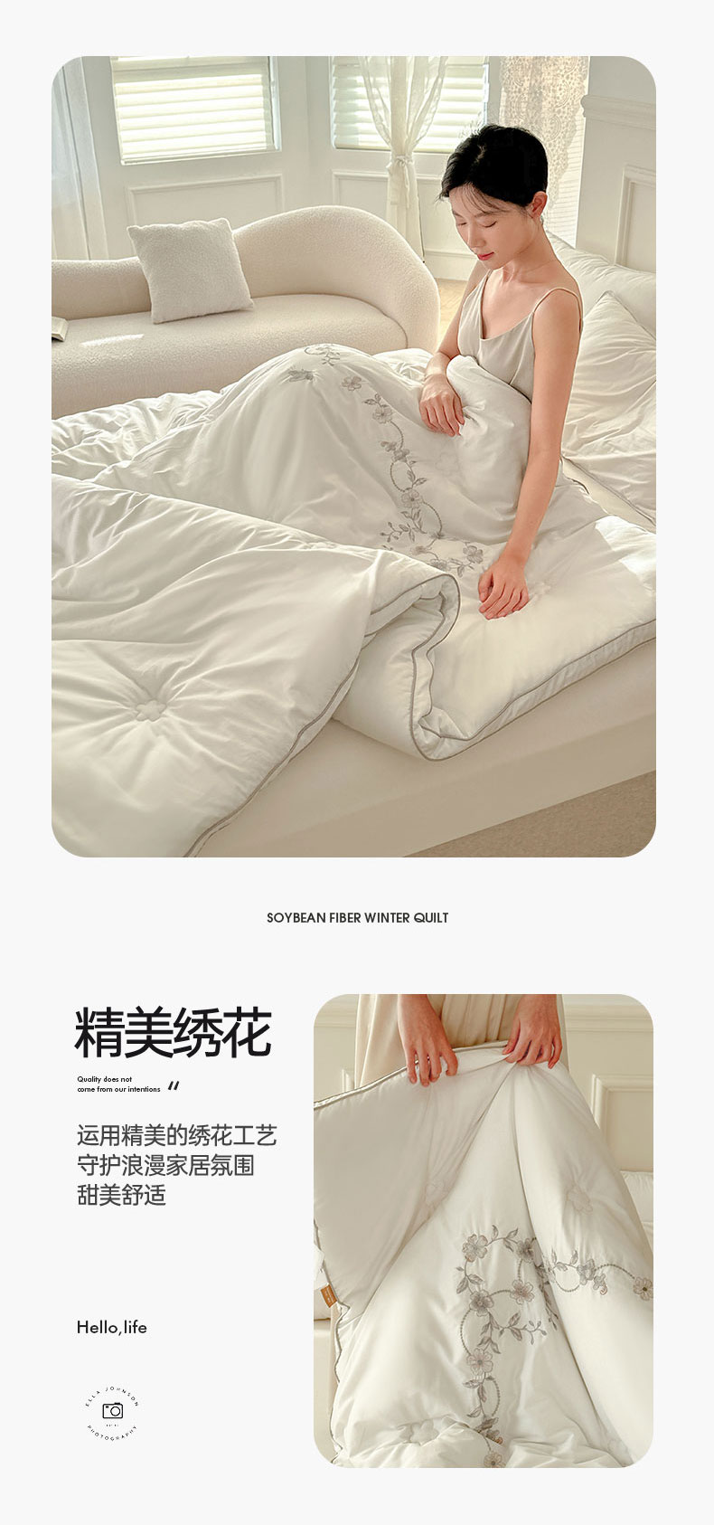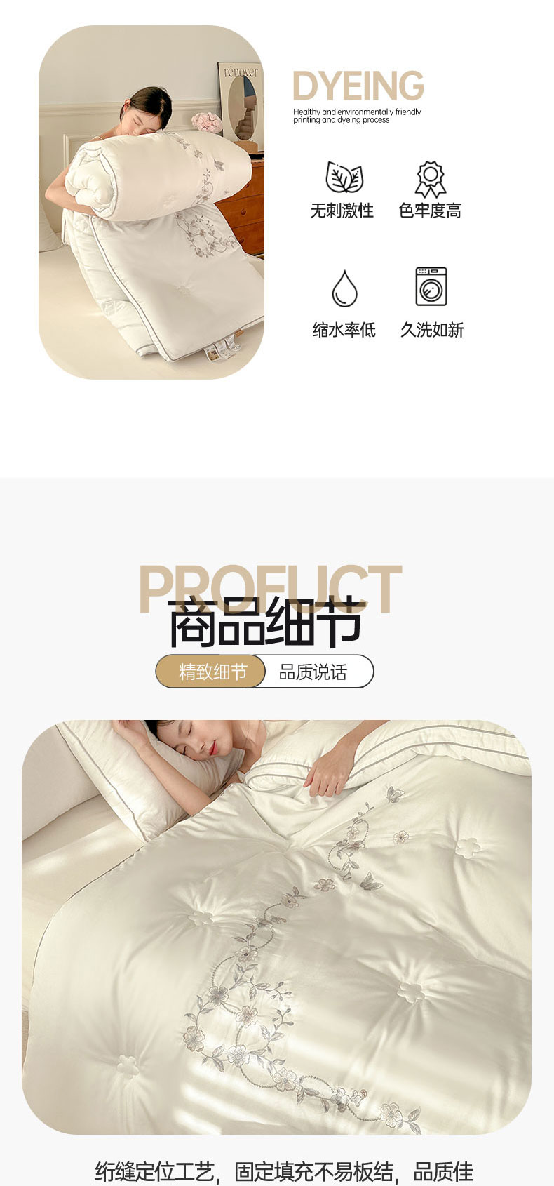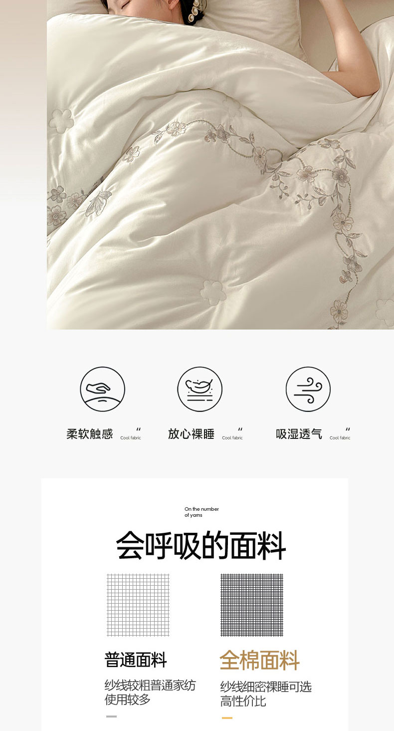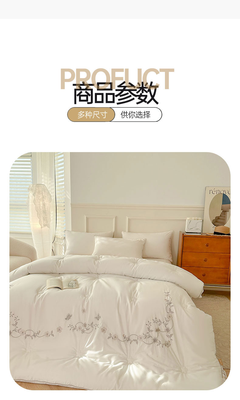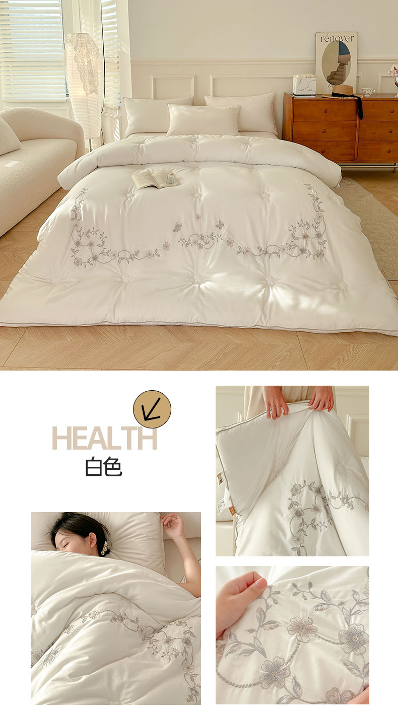 商品名称:歌历斯家纺 2023新款亲肤舒适A类60s全棉绣花款被子被芯 白色