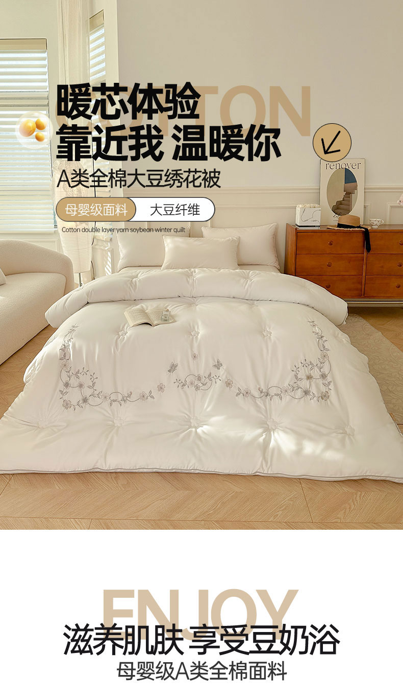 (总)歌历斯家纺 2025新款60S全棉五子登科喜庆被婚庆被绣花冬被全棉冬被立体边被子被芯四季被春秋被夏被,多福刺绣款
