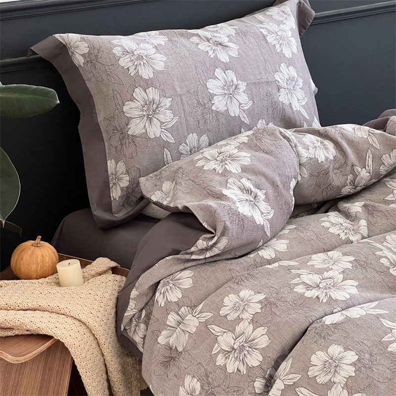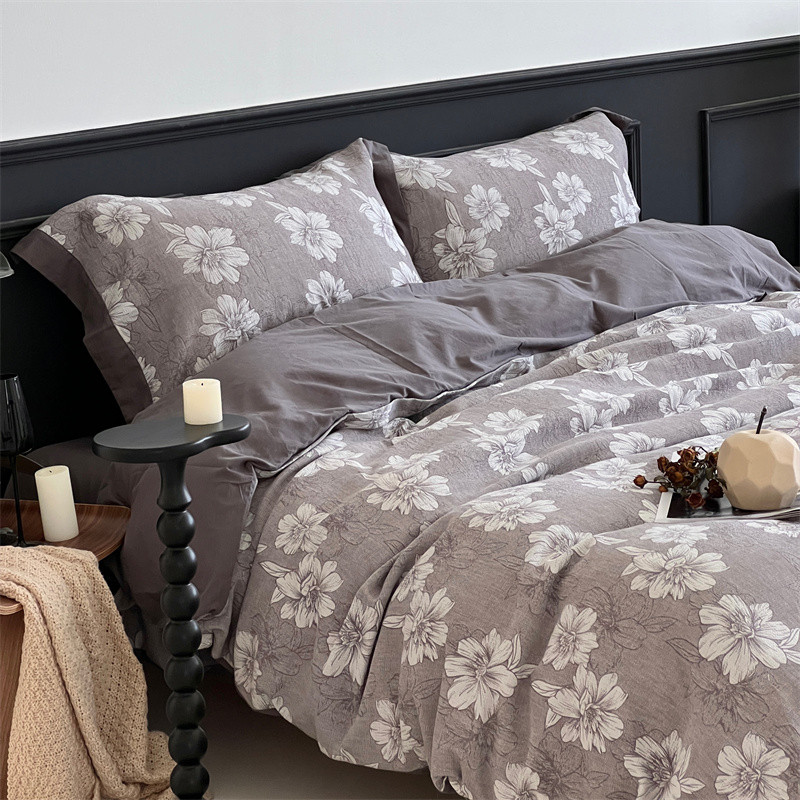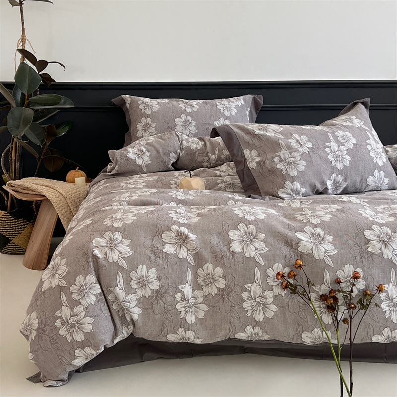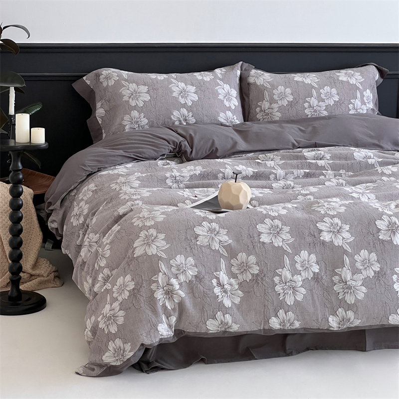梦享生活家居 2024新款色织全棉提花亲肤舒适四件套 花开声音-灰