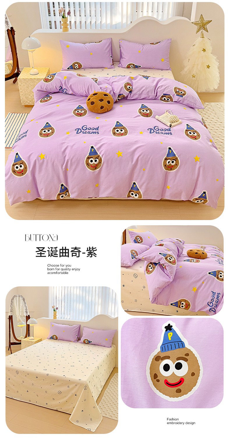 珺柔家纺 2024新款40支13070全棉印花四件套 圣诞曲奇-紫