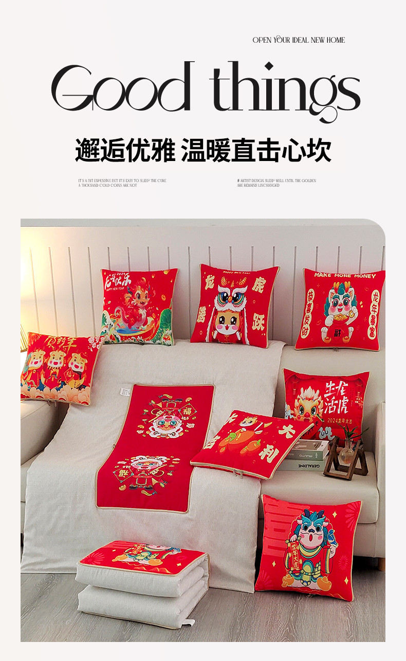 (总)伊可爱 2024新款磨毛多功能龙年抱枕被,福到龙年,龙年暴富,龙年大吉,龙年快乐,龙腾虎跃,龙运昌盛,三龙贺春,生龙活虎