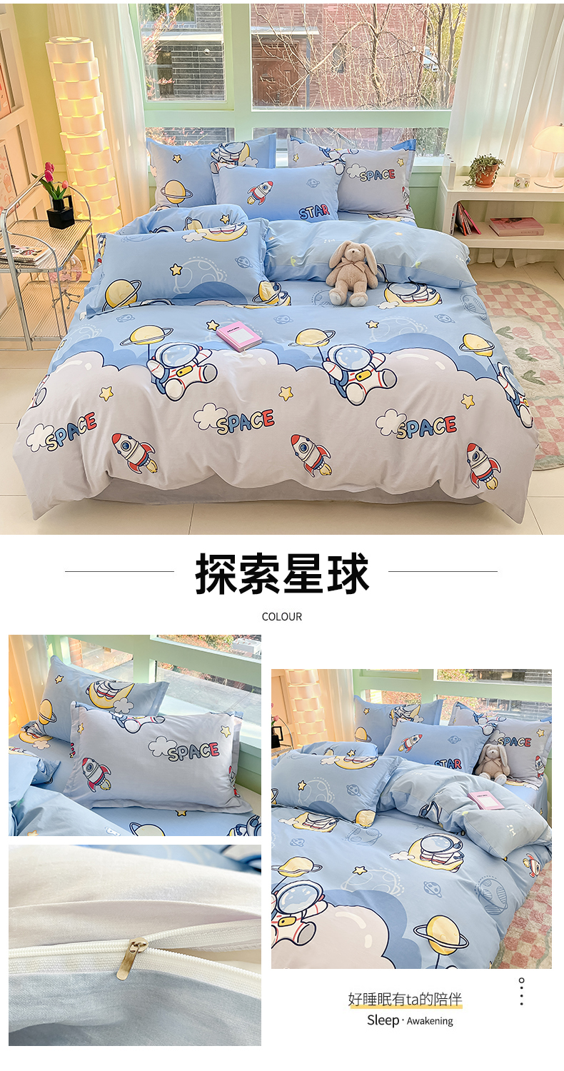 商品名称:莱通家纺 2024新款12868印花系列单被套 探索星球
