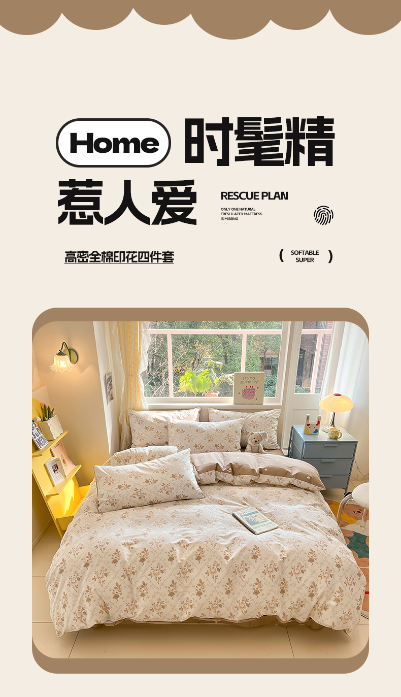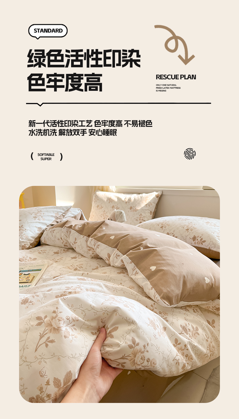 (总)雅居纺家纺 2022新款13070全棉印花四件套,波纹,多彩,简笔画,莓关系,奶油绿豹纹,倾心,数字
