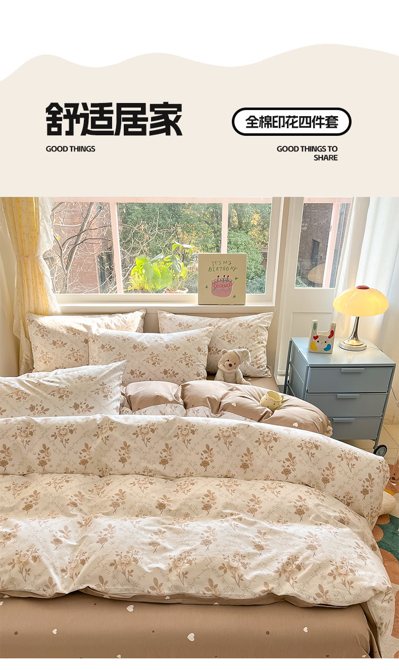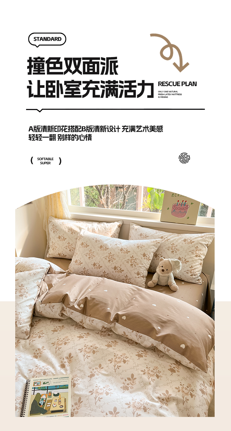 (总)雅居纺家纺 2026新款全棉小清新印花四件套,HI小狗,暴富,草莓蓝花,粉色熊熊,红红火火,简笔画小兔,蓝条花朵兔,绿色小兔,森林乐园,绅士快乐狗,贪睡猫猫,贪玩家族,贪玩小兔兔,祥瑞,小黑猫咪,幸福花朵,幸福兔-蓝,熊熊小汽车,紫色千鸟格