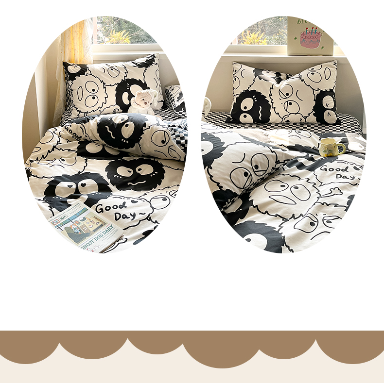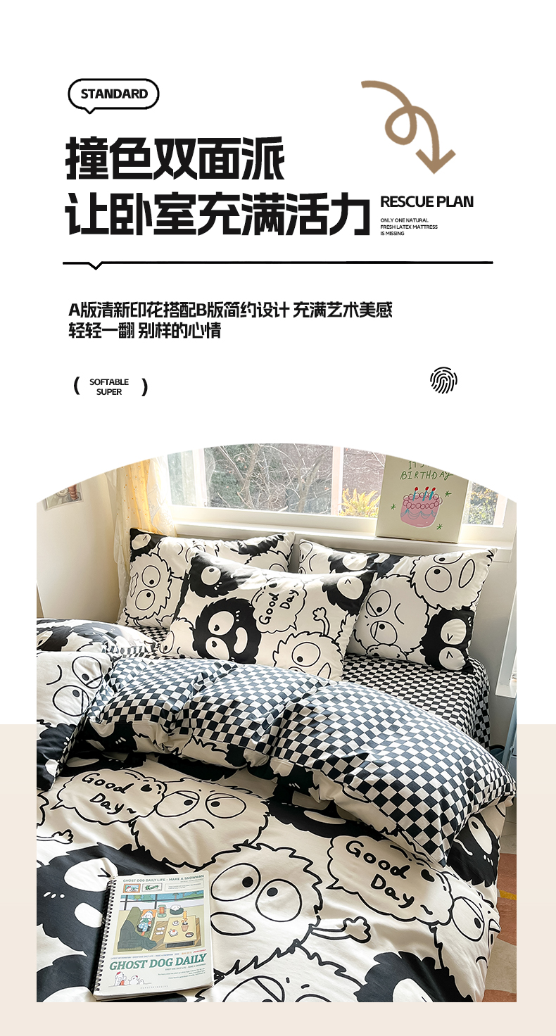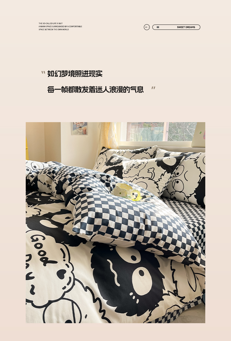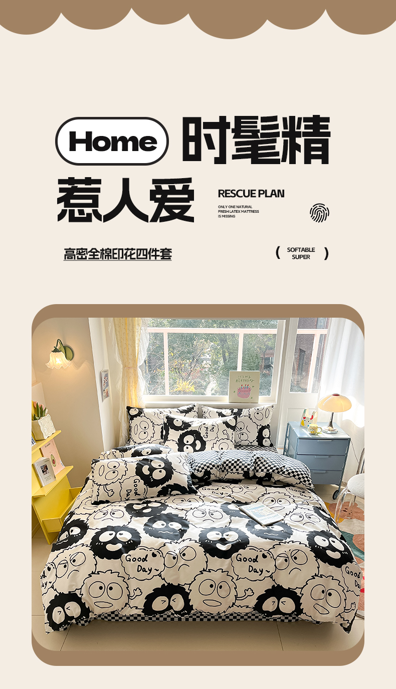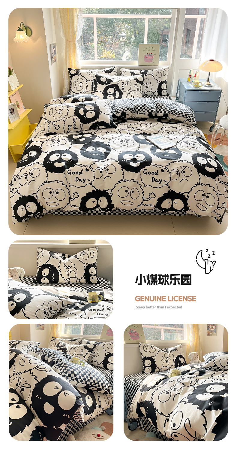 商品名称:雅居纺 2024新款高密全棉13070印花四件套 小煤球乐园