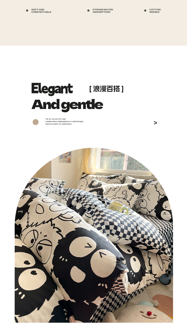 雅居纺 2024新款高密全棉13070印花四件套 小煤球乐园