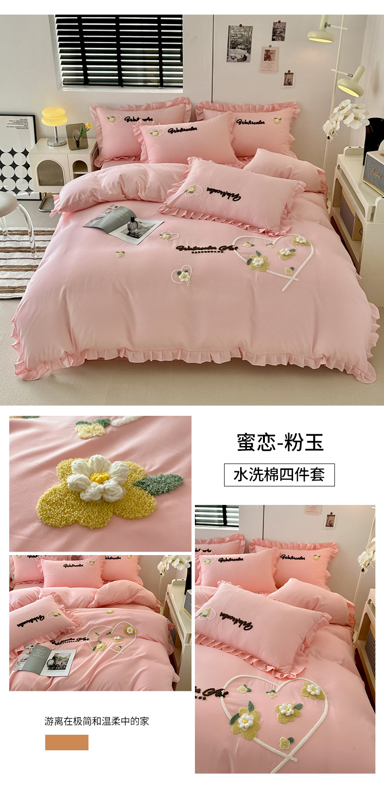 金米诺 2024新款水洗磨毛花边四件套夏被四件套-蜜恋 蜜恋-粉玉