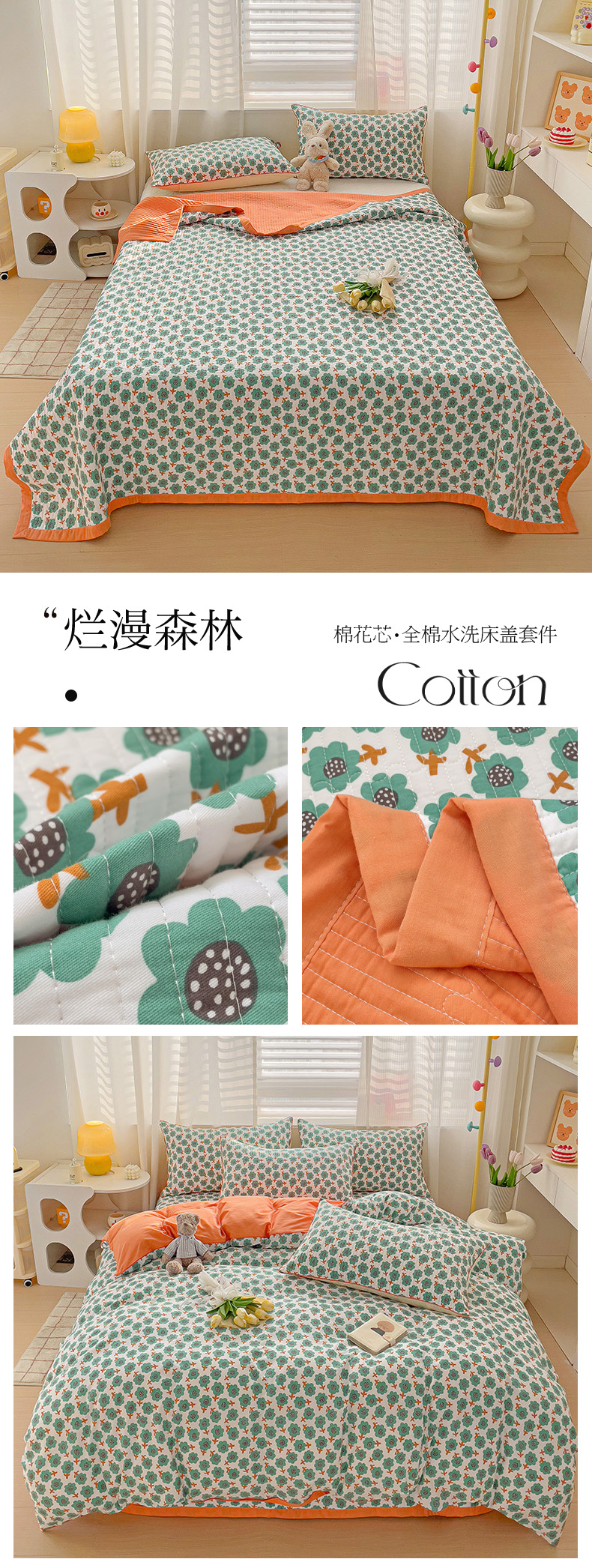 羽爱家纺 2024新款全棉水洗棉花芯床盖套件 烂漫森林