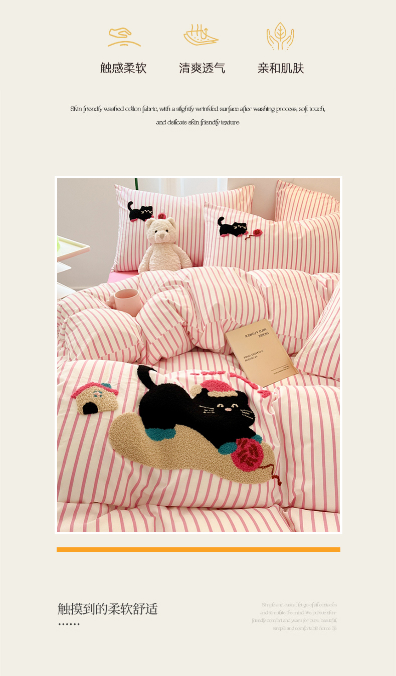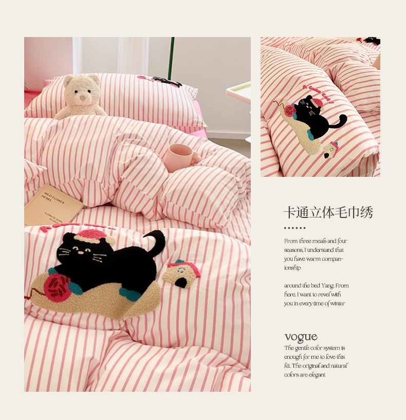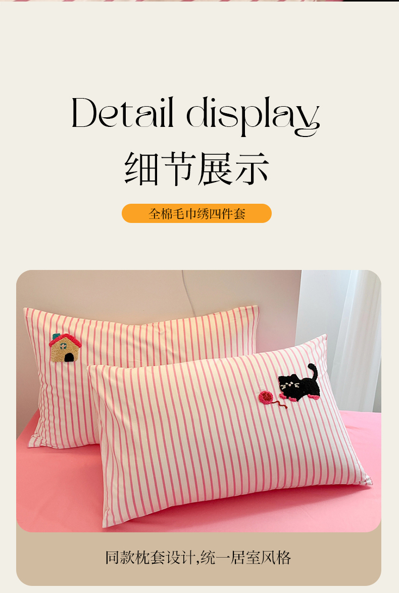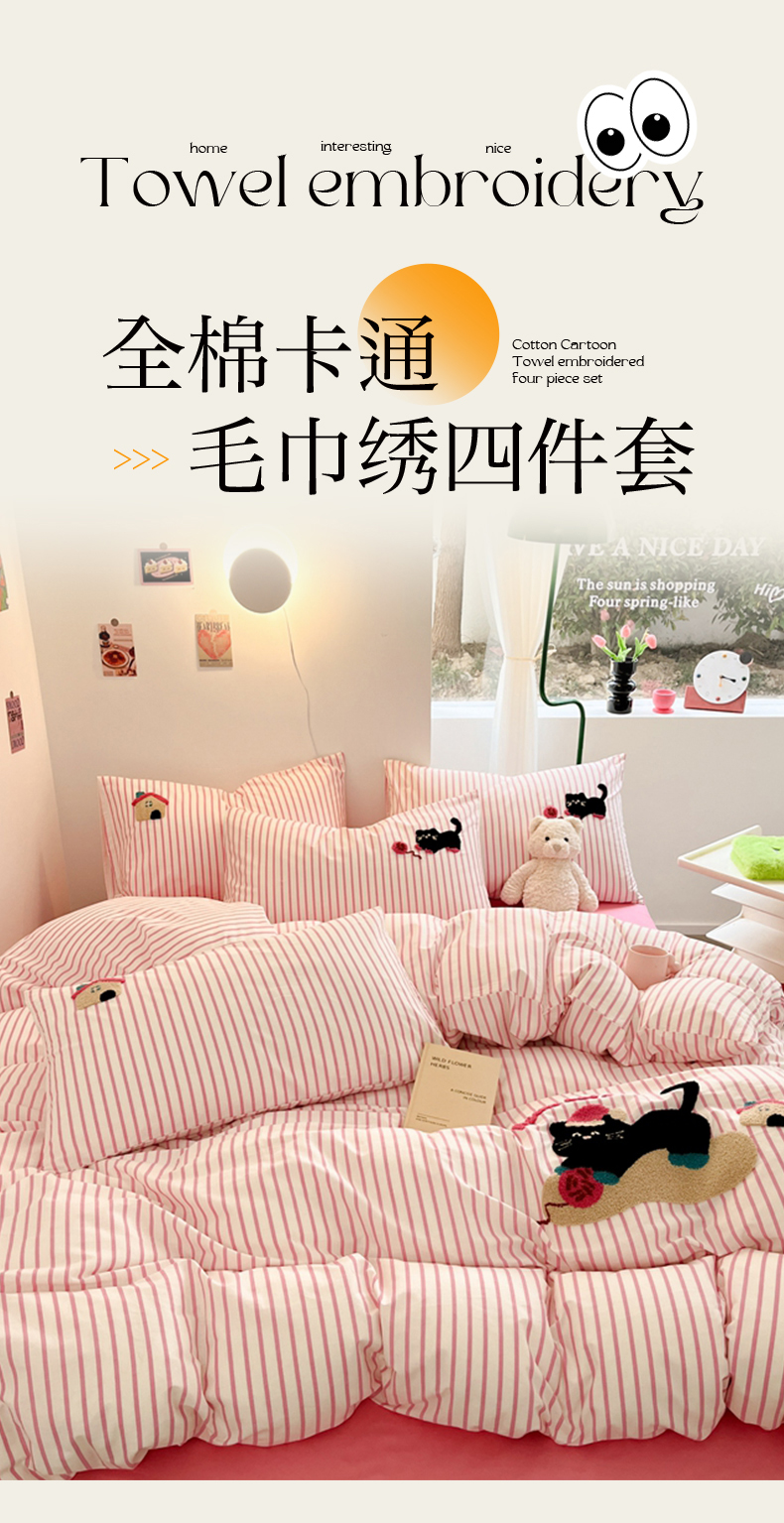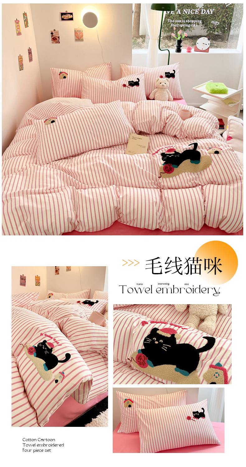 呗旺鹿 2024新款全棉13372毛巾绣四件套 毛线猫咪