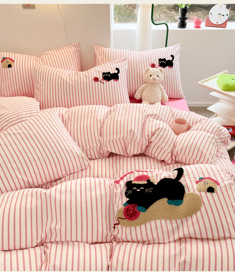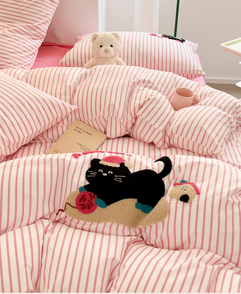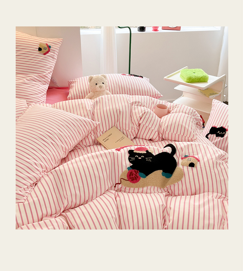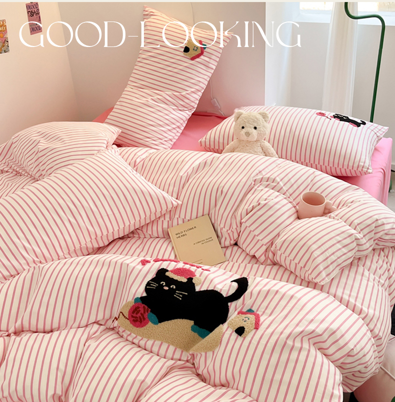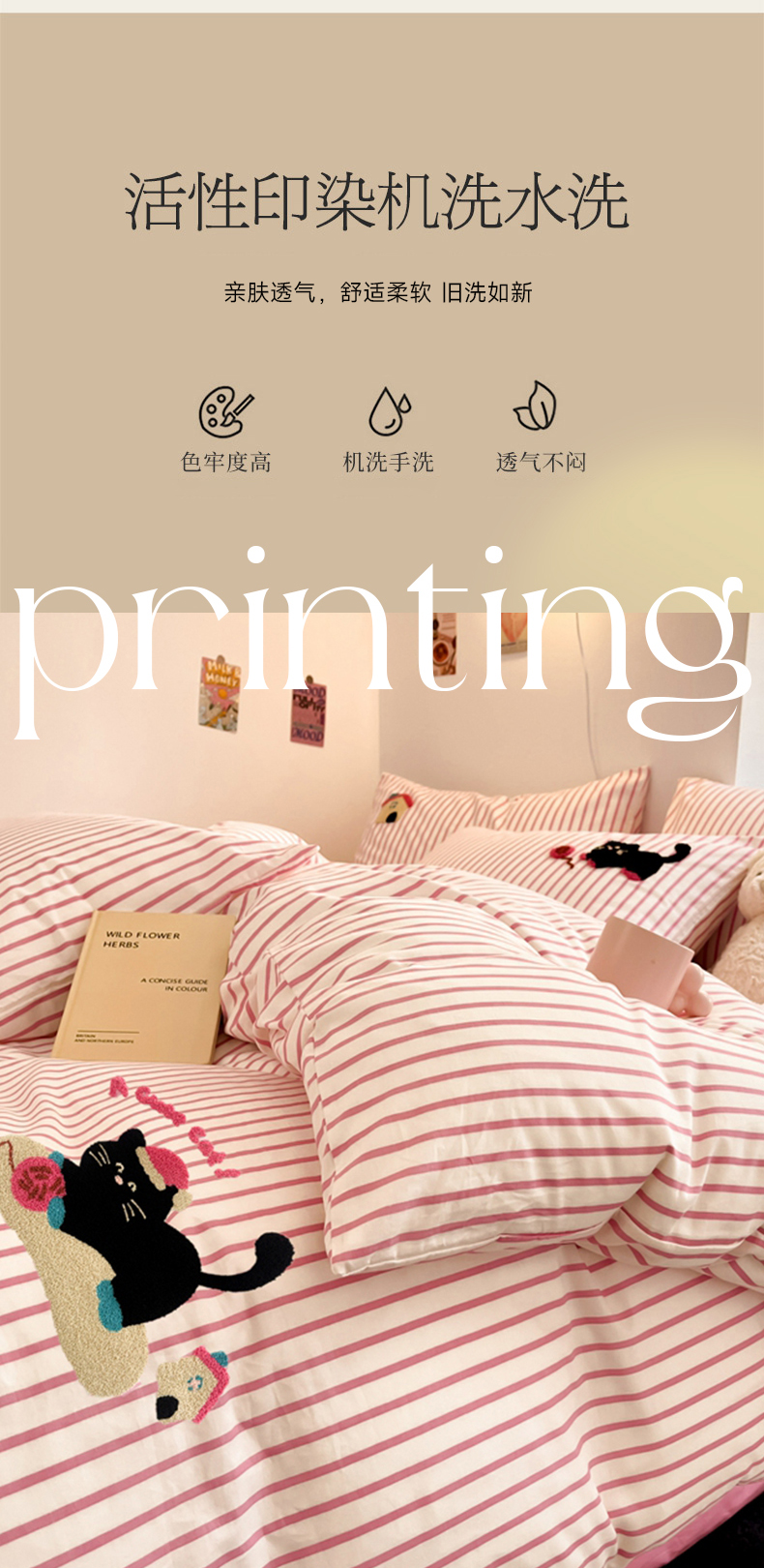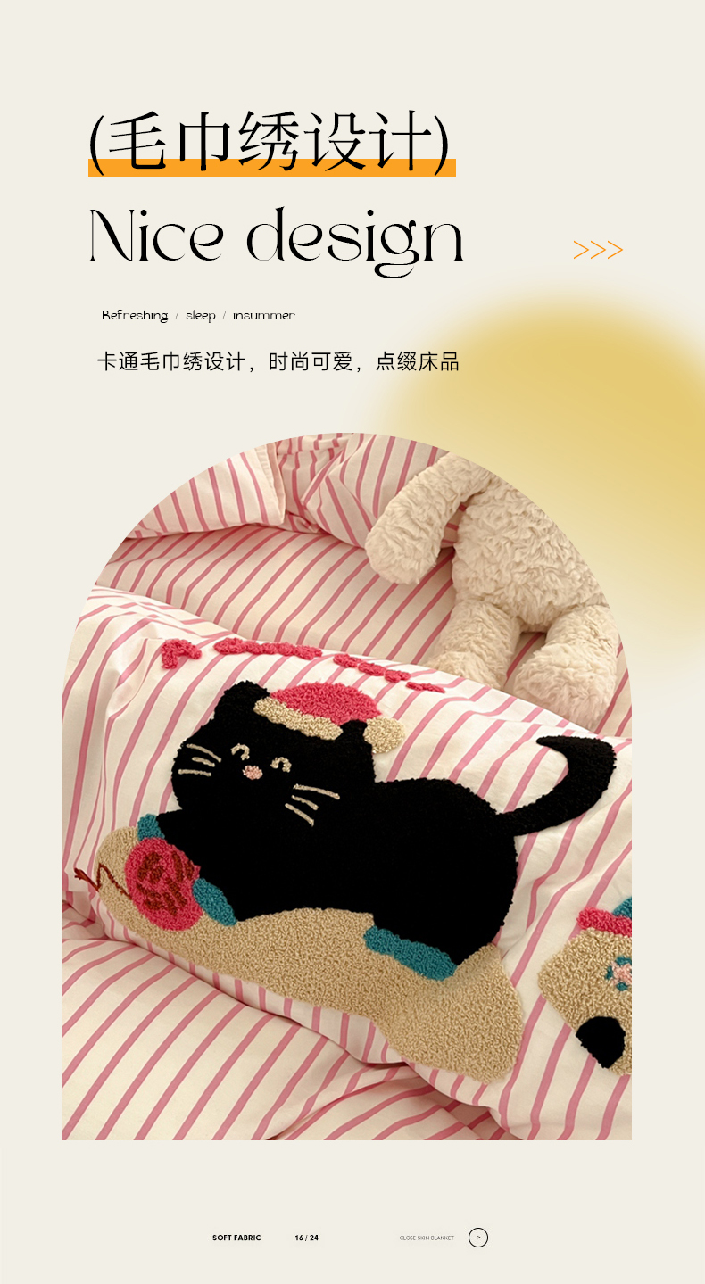 呗旺鹿 2024新款全棉13372毛巾绣四件套 毛线猫咪