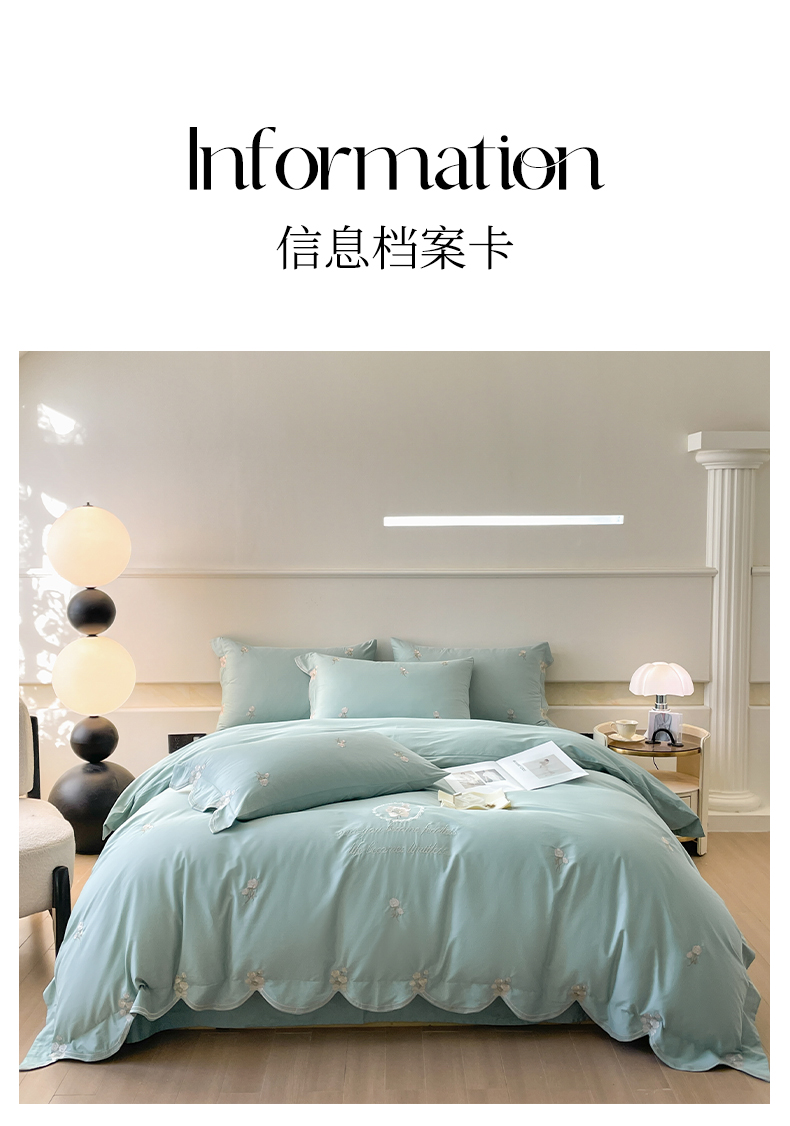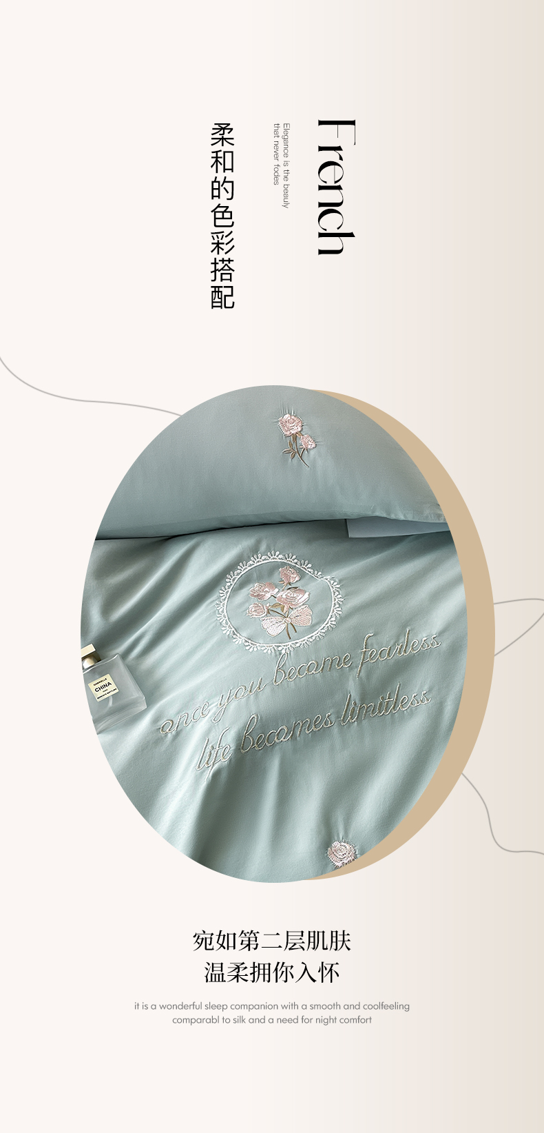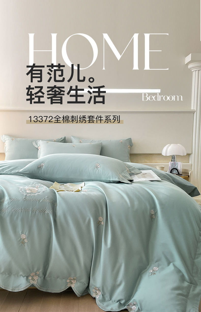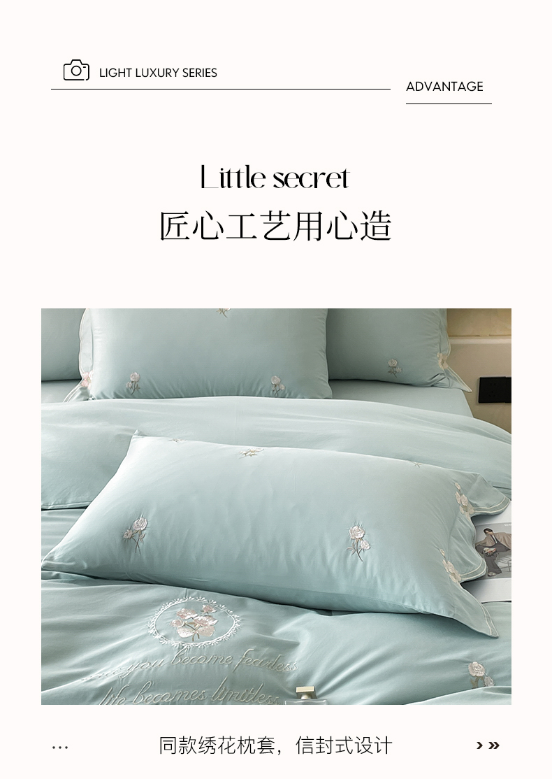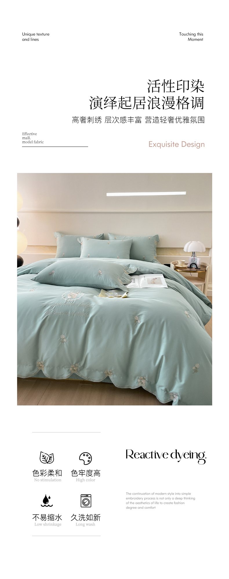 商品名称:理想家家纺 2024新款全棉刺绣13372四件套-罗拉 罗拉绿