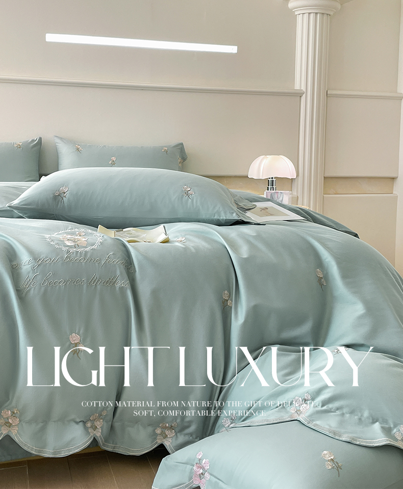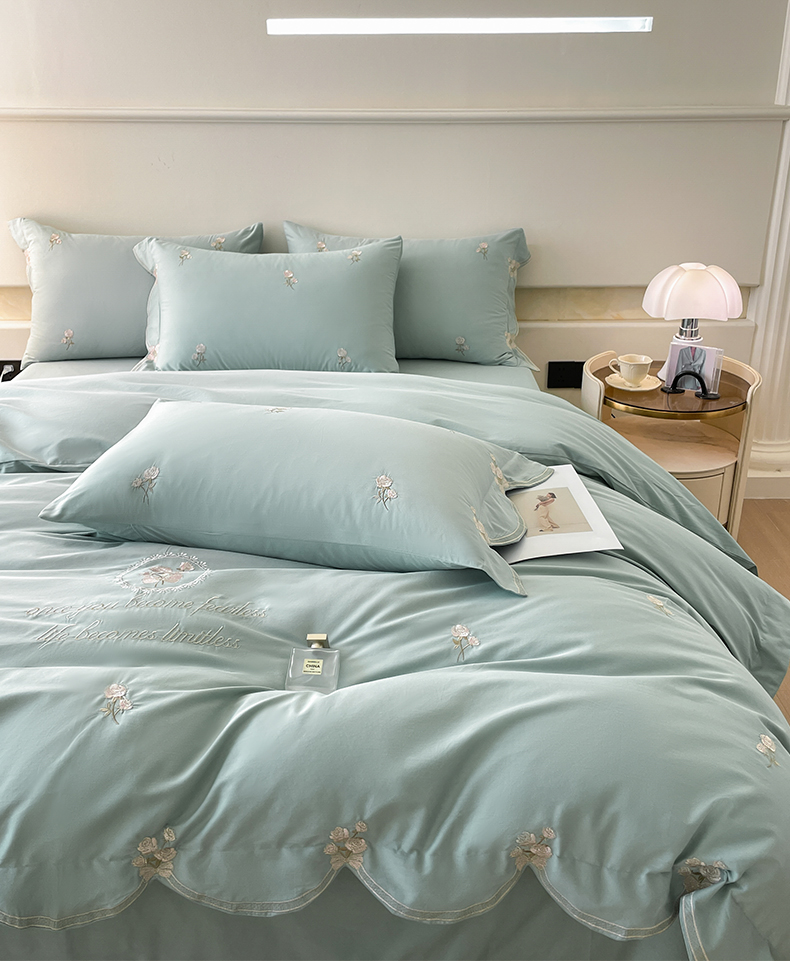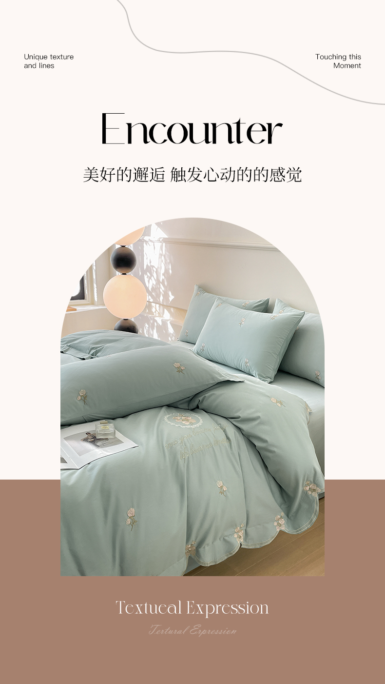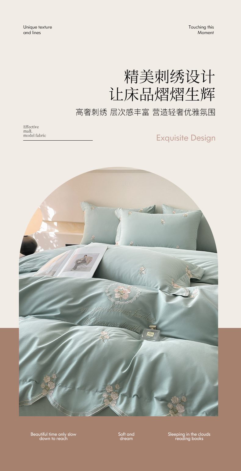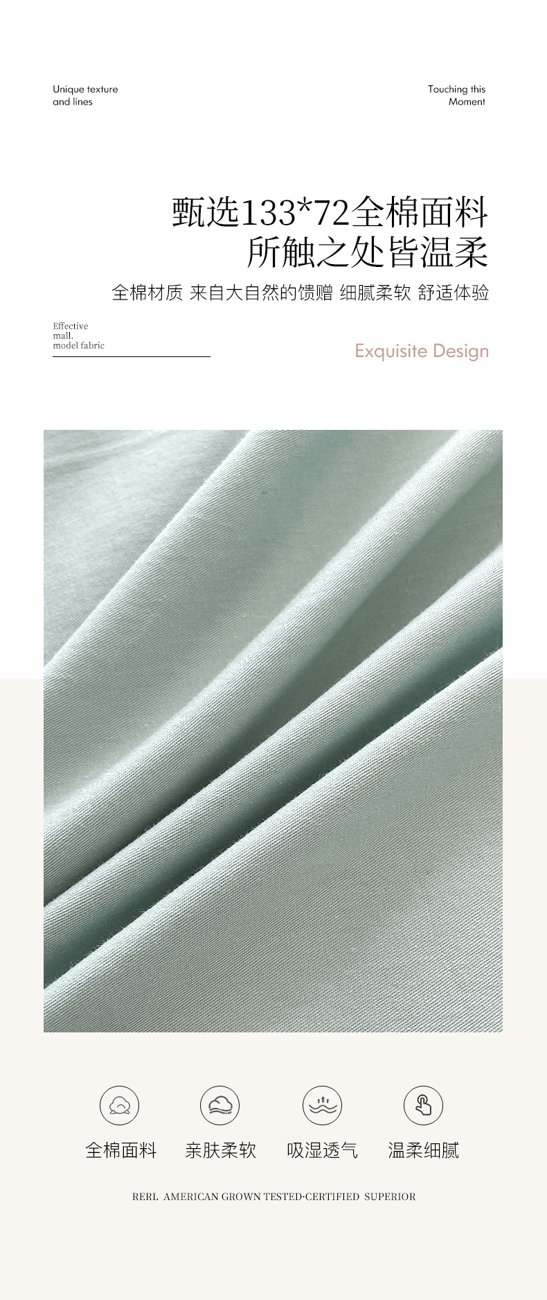 商品名称:理想家家纺 2024新款全棉刺绣13372四件套-罗拉 罗拉绿