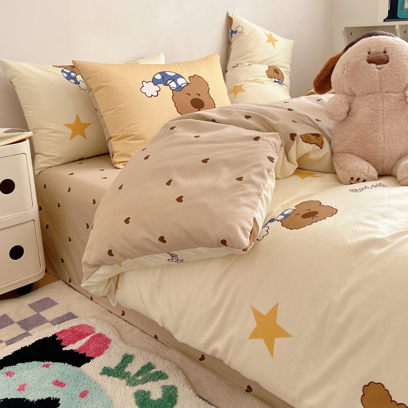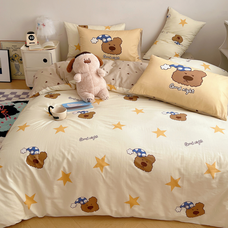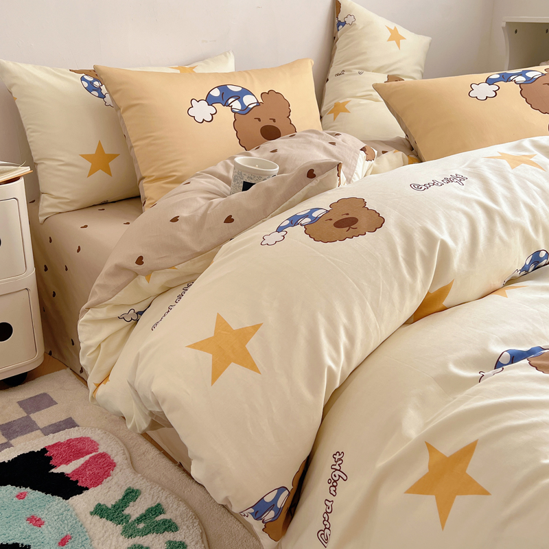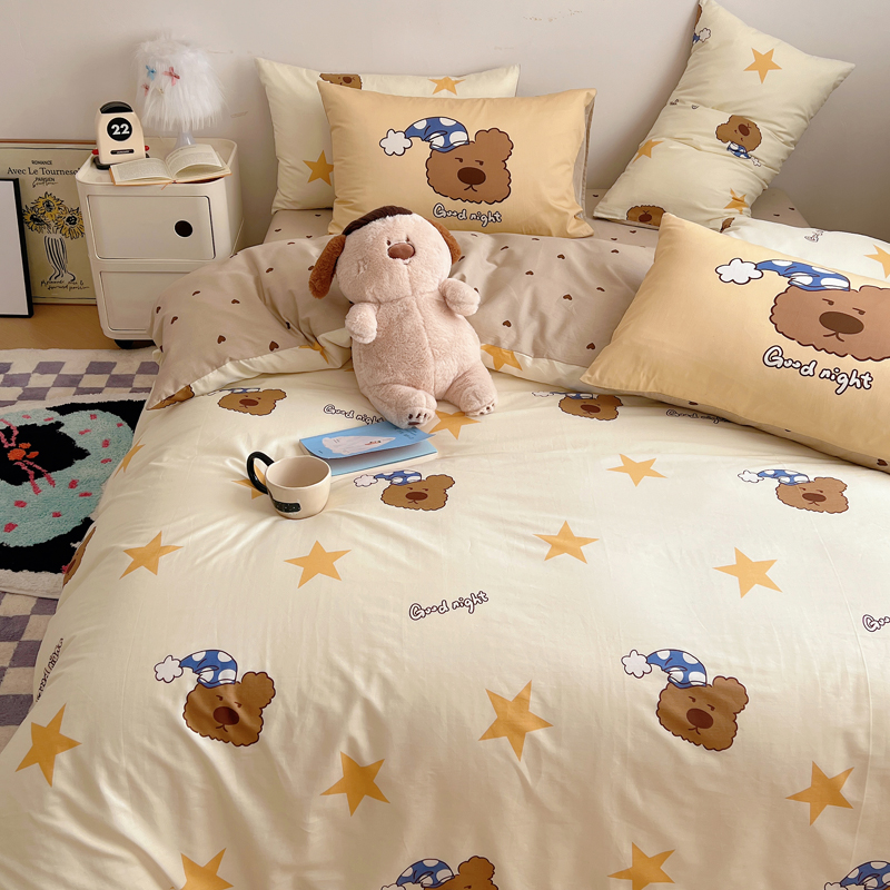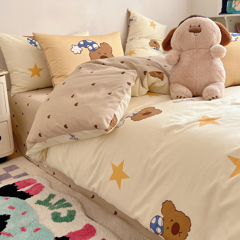 桃喜 2024新款全棉卡通数码印花混搭系列四件套 晚安小熊