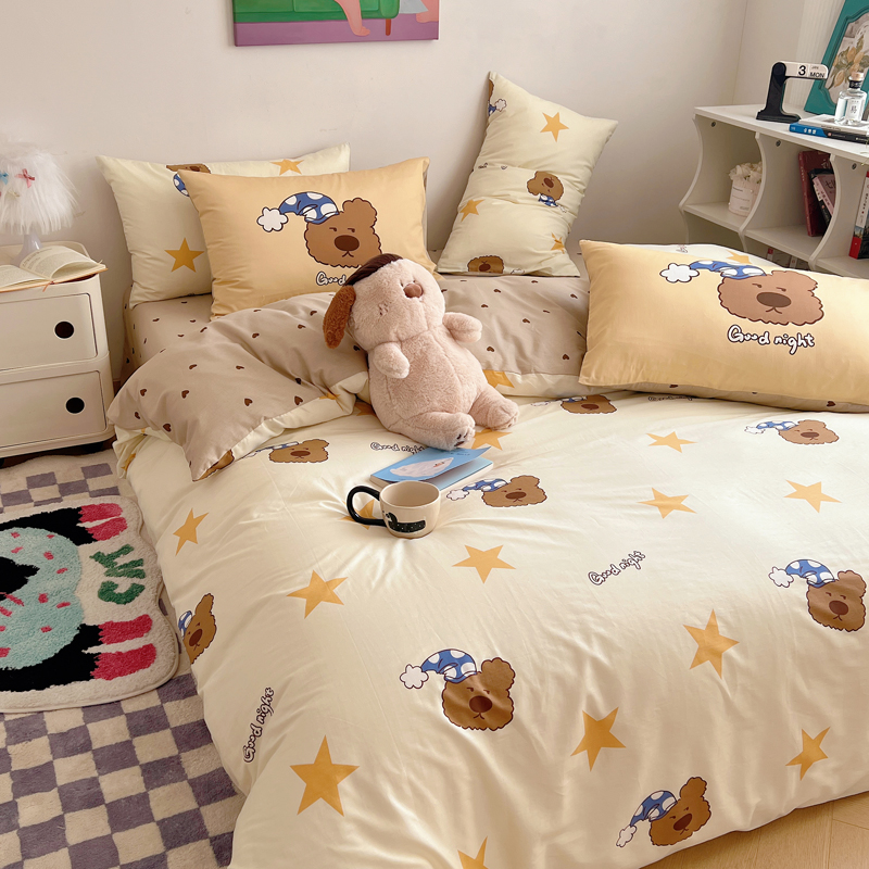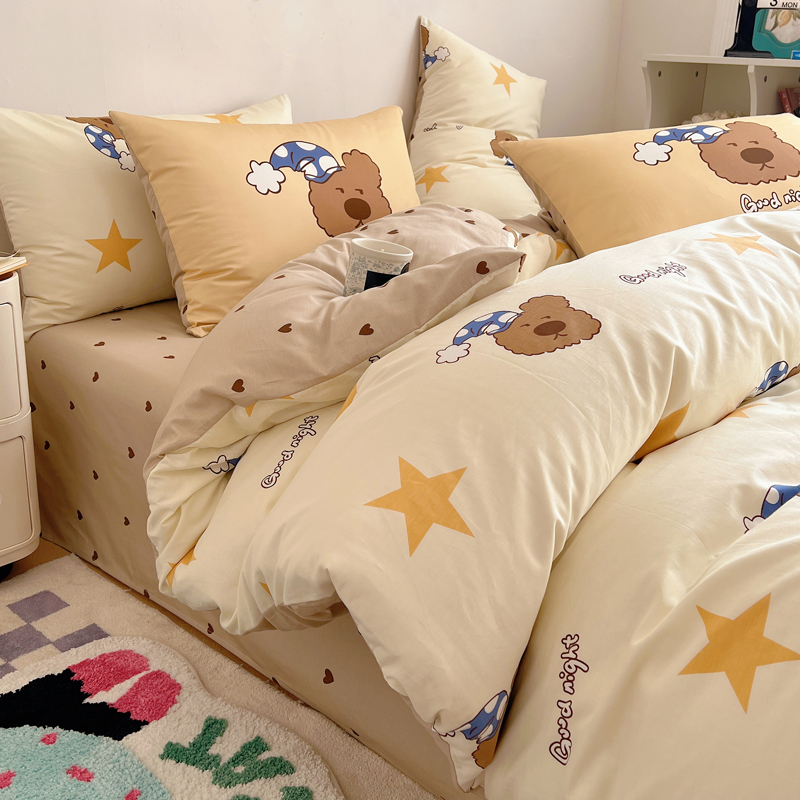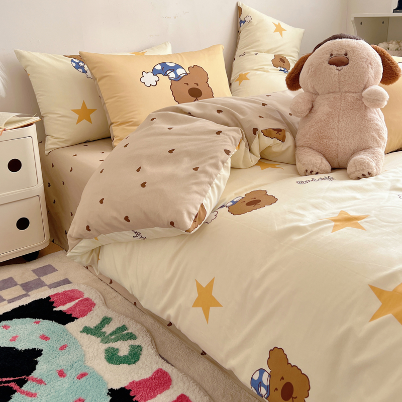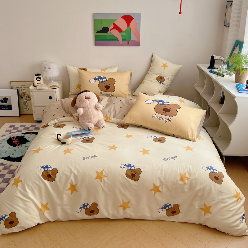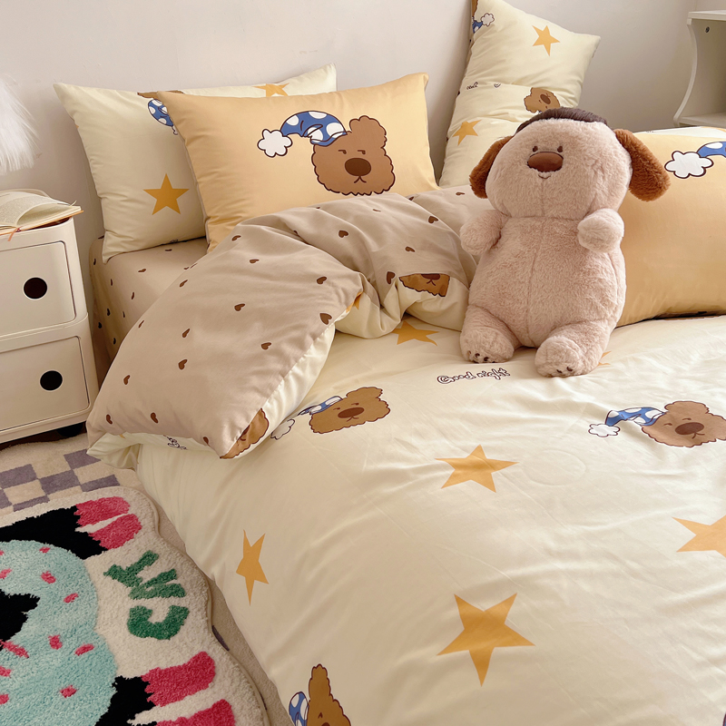 桃喜 2024新款全棉卡通数码印花混搭系列四件套 晚安小熊