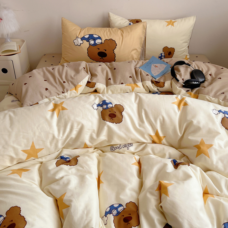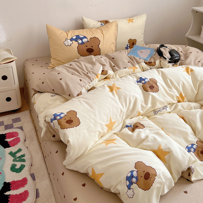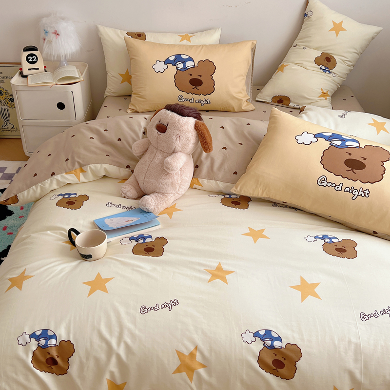 商品名称:桃喜 2024新款全棉卡通数码印花混搭系列四件套 晚安小熊