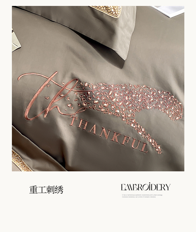 商品名称:蓝米卡夫 2024新品A类100支全棉高端时尚刺绣工艺款维密系列 维密-高雅灰