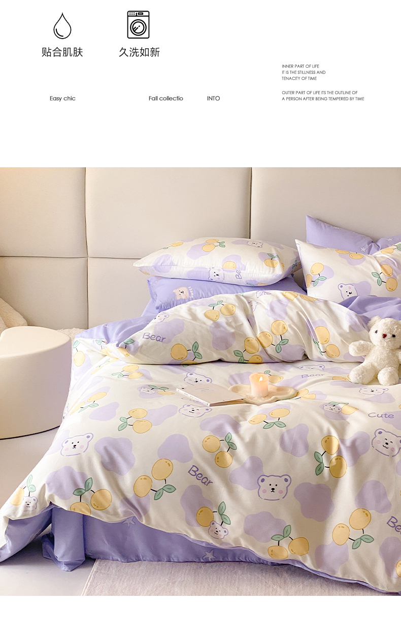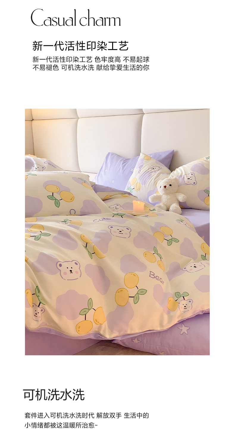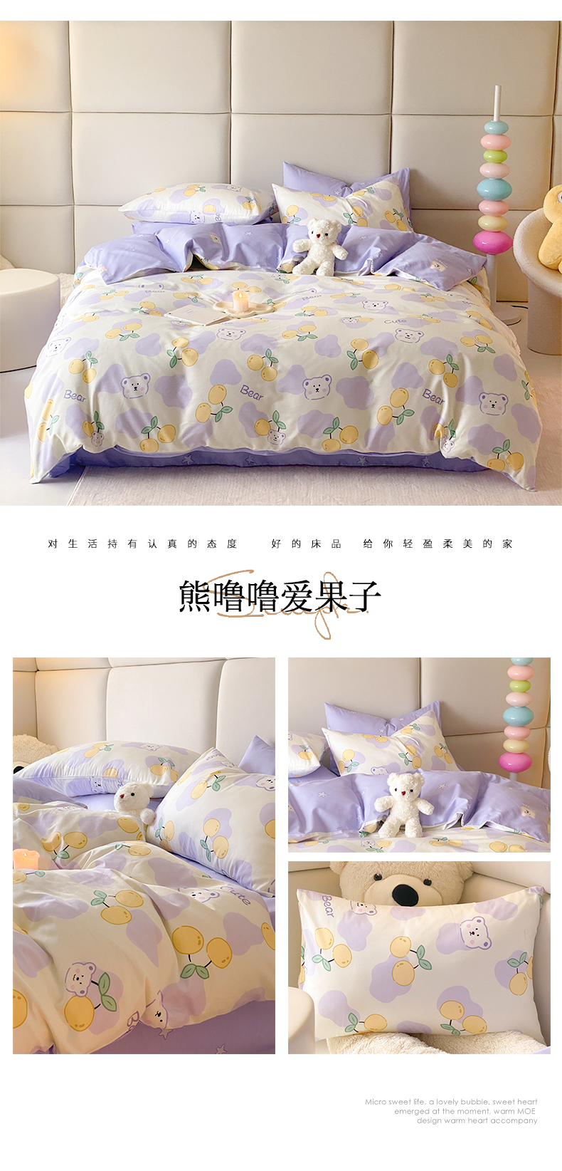 宜家坊 2024新款全棉喷气13070小清新印花四件套-拍摄一 熊噜噜爱果子